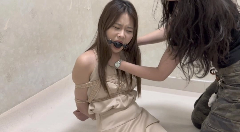 米粒超短裙日式极限驷马,极品玉足,放置杯子接口水,被女绑匪绑在小黑屋里折磨