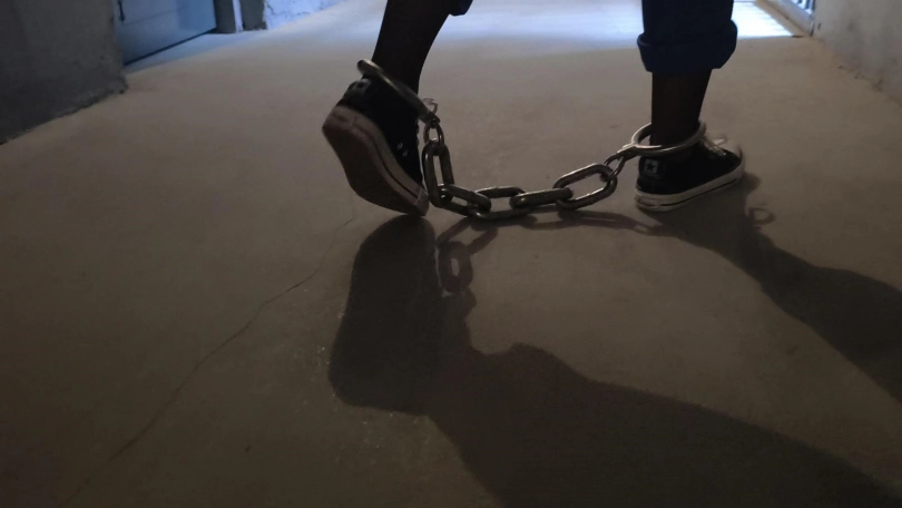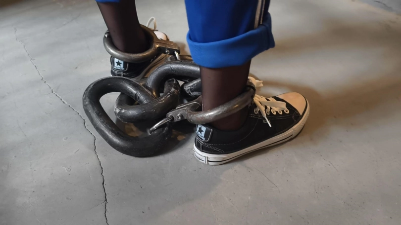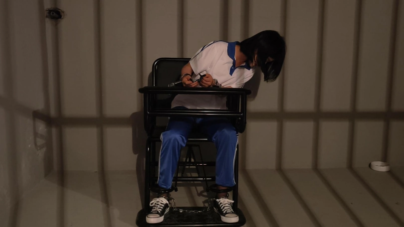 最后带上了30多斤的巨镣,妹妹终于受不了了,开始求饶,求姐姐给她解开,表示以后一定好好上学好好读书。