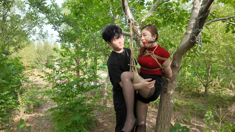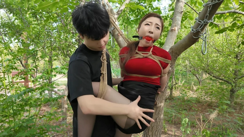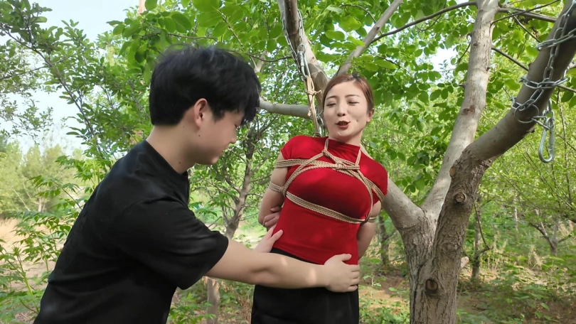 自从和妈妈玩了两次捆绑游戏之后,儿子一直念念不忘,想着啥时候在玩一次,无奈妈妈不答应,这天就筹划骗妈妈回老家,筹划在老家捆绑妈妈,妈妈下班后就和妈妈提出想回老家看看,并且偷偷带上手铐,绳子,口塞......妈妈最后被吊缚在树上,一个人独自享受,自言自语,没想到竟然获得了[X_X],喜欢被捆绑的感觉
