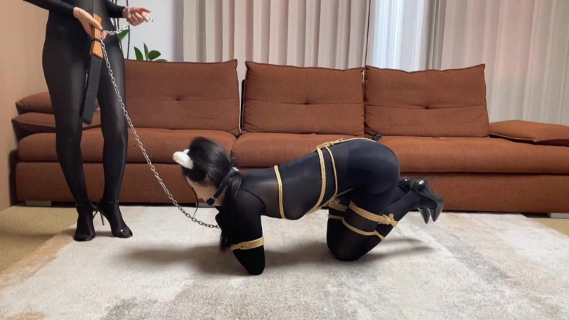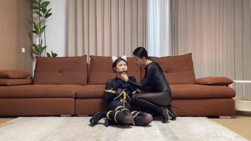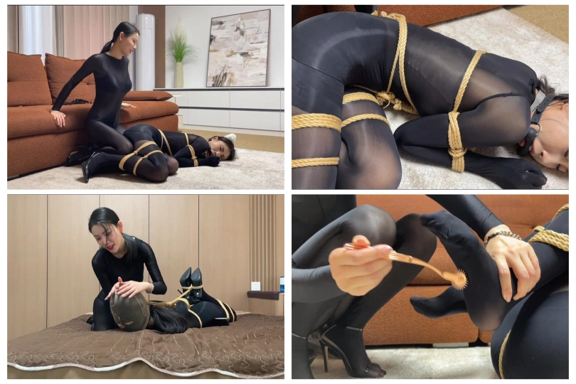 【视频时长】:00:28:14 【文件大小】:999MB 请到的模特是柳洋和恩可(七七),这个系列视频的剧情内容为女特工在家自缚以练习脱缚术,不料却被女飞贼入室偷袭迷晕,在被女飞贼捆绑玩弄之后,女特工利用飞贼外出取钱的时间挣脱束缚,最终反杀女飞贼并狠狠报复她。具体的角色对话如下,本期几乎全程捆绑,不需要跳转即可进入正片。 取完钱的恩可美滋滋的返回柳洋住所,“干这一票可真值当,这小妮子果然有钱,回去再把她家的金银首饰卖掉还能再赚一笔。”可当恩可进入卧室发现,床上只剩下绳子和胶带,本来被捆的柳洋却不见了踪影。 “人哪去了?”恩可正要寻找,突然被背后的柳洋一手刀打晕。 “哼,小毛贼,今天让你见识一下老娘的厉害。”之前被捆绑羞辱的柳洋迫不及待地展开报复行动,直接将恩可拖到地上侧卧着捆了个K9犬缚。 过了半晌,恩可醒了过来,惊恐的发现自己居然捆成了小狗模样,想要说话但嘴巴被骨头口枷塞住。柳洋慢慢走过来捏住恩可的脸:“好你个小毛贼,偷东西偷到我家里了,居然还敢趁我自缚的时候偷袭我,现在换我调教调教你了。”柳洋一面贴脸细嗅恩可一面用手不断在恩可身上游走,“你这身材也不错嘛”话毕柳洋双手狠狠地捏了两下恩可的玉足。“现在轮到你体会那种痛痒难耐欲罢不能的感受了。”边说话柳洋边拿起刺轮对着恩可的玉足进行猛攻。 可能觉得这样还不过瘾,柳洋拿起狗链子拴在恩可项圈上,像遛狗一样溜着恩可爬了几圈,边溜还不忘用皮鞭抽打恩可的臀部。“快爬快爬,再不快点爬我就把你扒光抽你。” 被一顿折磨的恩可只能呜呜哀嚎,柳洋见状不耐烦的用手捂住恩可的口鼻,“我知道你想说啥,被我背后一手刀打晕了不服是吧,实话告诉你吧,我是天枢组织的特工,就算给你正面和我对决的机会,你也赢不了的。” 听闻自己踩点踩的目标居然是个秘密特工,恩可大吃一惊,但求生欲还是驱使她不断扭动娇躯,寻求挣脱束缚的机会。 “真是不老实啊。”柳洋一个手刀再度打晕恩可。“看来必须得让你认清现实你才能服帖。” 等恩可再度醒来发现自己趴在床上,整个人被捆成了折腿并肘驷马,绳子和肌肤几乎密不可分,使得恩可动弹不得,此刻恩可除了发出无助的呜呜声几乎什么也做不了。 “别叫了,我给你个机会,如果你能在十分钟内挣开束缚,我就放你一马,但如果时间到了你还没能脱缚,那你就永远当我的女奴吧。”听到自己有机会活下去,恩可连忙点头表示同意。 “好了,倒计时开始了,你好好努力哦,十分钟后我来验收成果。”说罢柳洋用胶带在口球外面缠绕几圈,用丝袜套在恩可头上便离开了房间,只留恩可一人挣扎。 柳洋走后,恩可开始奋力挣扎,但柳洋捆得密不透风,而且特意用胶带包住恩可的双手,大大增加了脱缚难度,最终恩可没能在十分钟内完成挑战。 倒计时走完,柳洋一脸坏笑地走进房间,俯身在恩可耳边幽幽地说道:“看来你没能把握住机会哦,我正式宣布你成为我的永久女奴,慢慢享受吧。”镜头慢慢退远,在恩可的呜呜声中结束。 ![]() ![]() ![]() ![]() ![]() ![]() ![]() ![]() ![]() ![]() ![]() ![]() ![]() ![]() ![]() ![]() ![]() ![]() ![]() ![]() ![]() ![]() ![]() ![]() ![]() ![]() ![]() ![]() ![]() ![]() ![]() ![]() ![]() ![]() ![]() ![]() ![]() ![]() ![]()