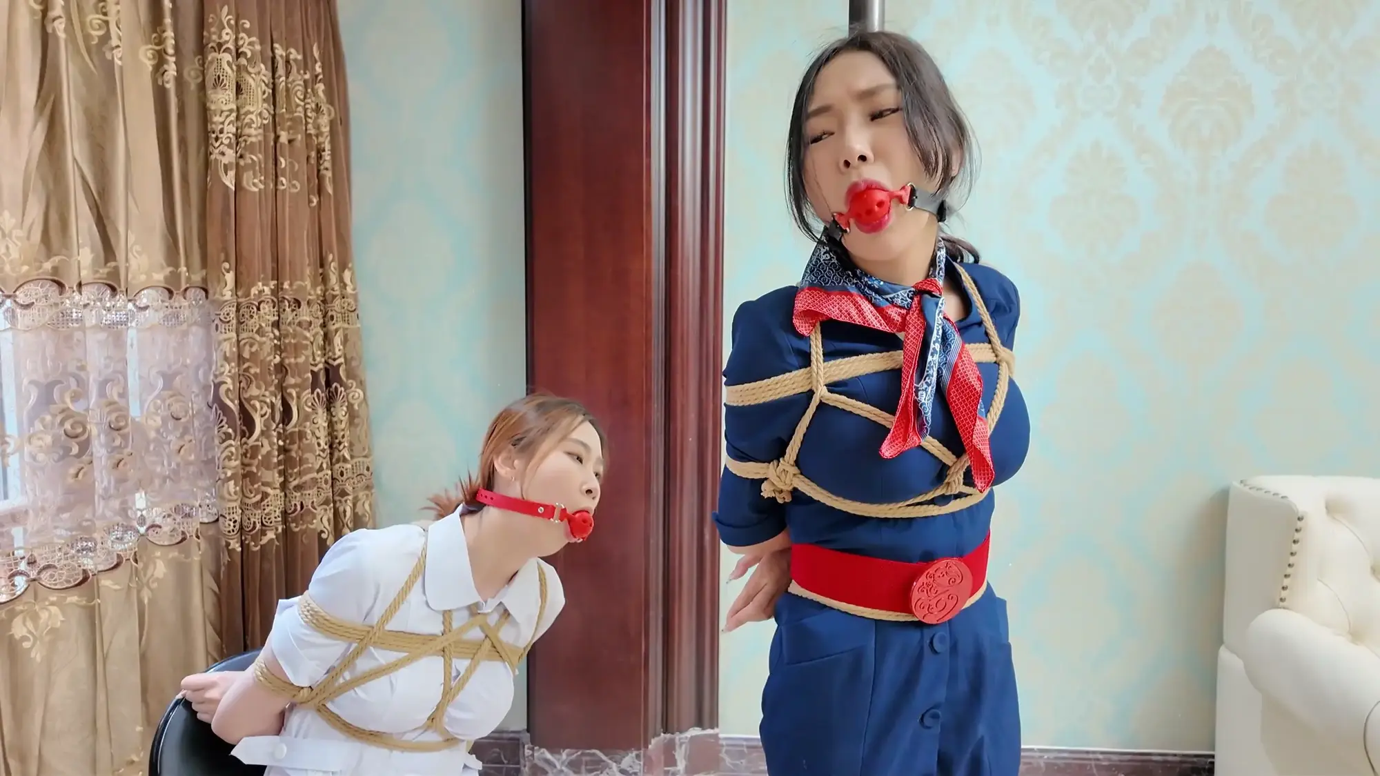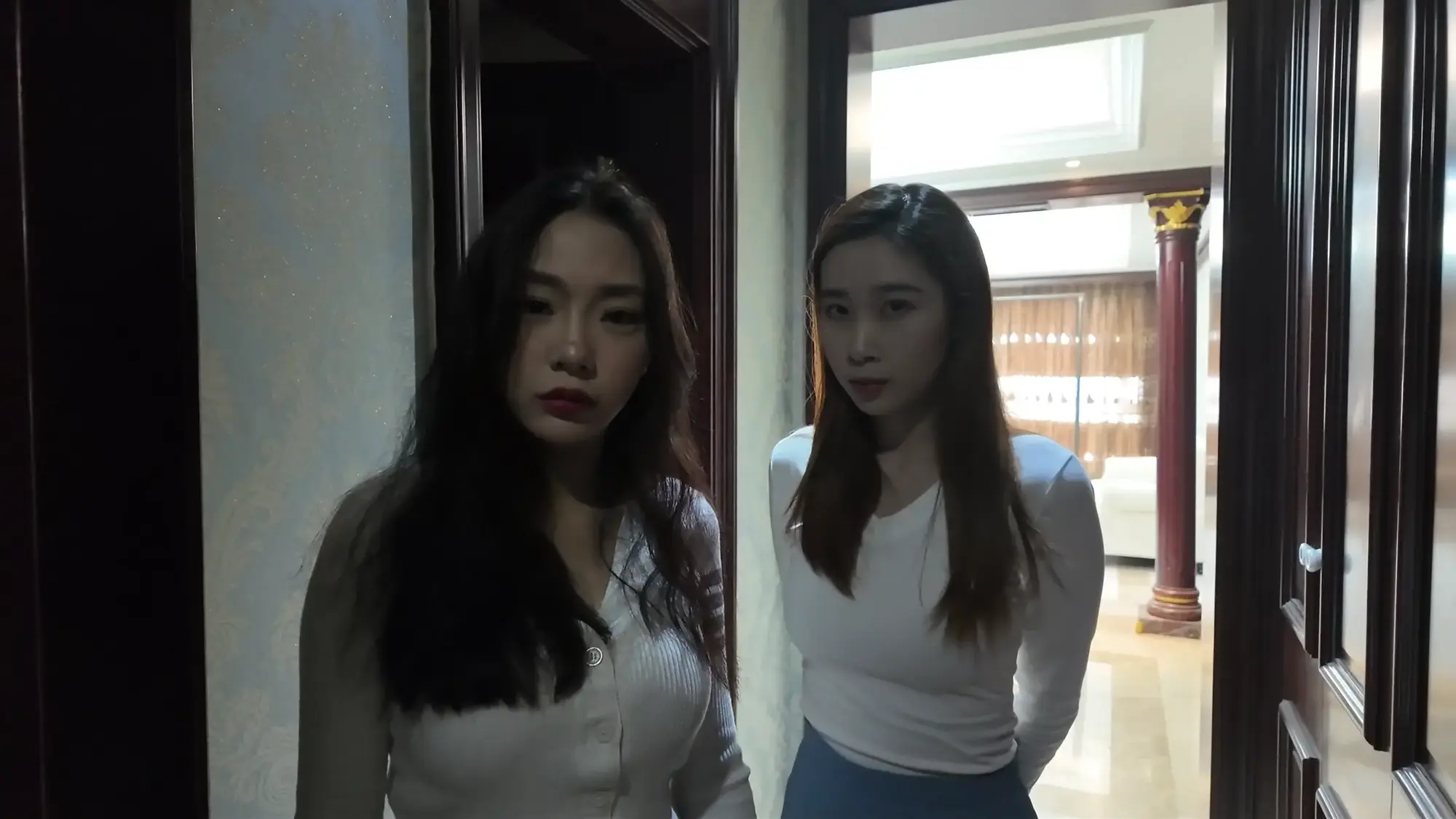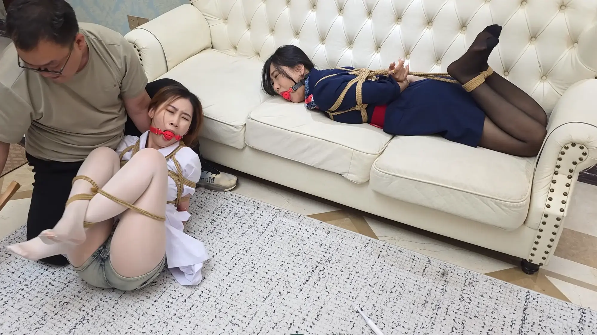 姐妹俩听说有快递员上门很奇怪,因为最近并没有网购,开了门大吃一惊,因为快递员和幻想绳文中的小七一模一样,快递员看到姐妹花颜值高身材好,口水留了一地,然后就开始yy