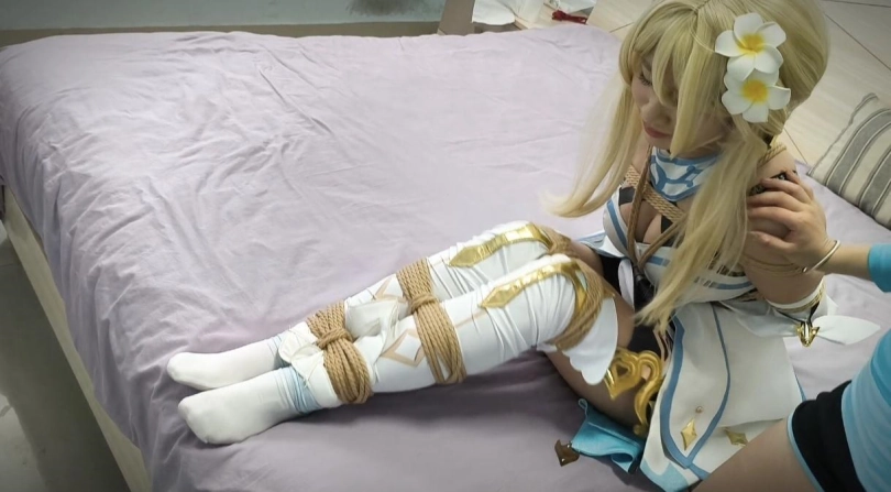 【视频时长】:00:14:52 【文件大小】:1890.42MB 荧在走着的时候遇到敌人,和敌人交战了几招之后敌人说派蒙已经被抓了,如果不想她出意外的话就束手就擒,荧无奈只能送绑。敌人把荧上半身捆住一手刀把荧打晕,之后把她带到另一个地方。荧醒来了之后发现全身包括腿都被捆住,然后开始挣扎,挣扎的声音吸引来了敌人。荧赶紧问派蒙在哪,敌人说派蒙根本就没被抓,荧是被骗了。荧这时候生气,大骂敌人,敌人正准备来堵住荧的嘴的时候荧一下子窜起来把敌人撞倒在地然后趁机跳走。跳了一会之后荧突然感觉绳子变紧,然后就摔倒在地上,敌人这时候出现表示这是特制的魔法绳子。之后敌人把荧捆在了柱子上,荧一直挣扎,发现无法挣脱,只能愤怒又无奈 ![]() ![]() ![]() ![]() ![]() ![]() ![]() ![]() ![]()