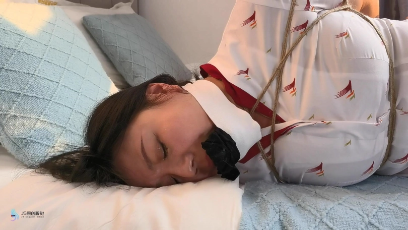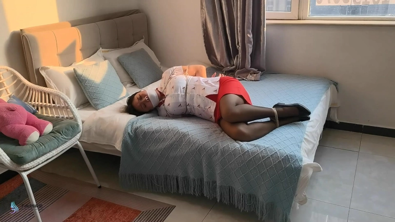 【视频时长】:00:33:33 【文件大小】:2017MB 1.1名男性鄰居因听到奇怪声音,故推开房子之门,惊吓地发现李然只穿着胸罩及内裤,手腕、膝蓋以上及足踝被扎带绑着,嘴被毛巾堵上,于客厅中挣扎地跳躍着。李然惊恐地呼叫着,发出「鸣呜…」声音。她看到该男人后,露出了喜悦的眼神,并尝试在嘴被封上胶带的情况下说出「警察先生,请你救救我,替我松开捆绑吧,绑得很紧…」。警察随即便替李然拿走嘴上的坐左沙發上,接着警察便问李然发生了甚么事?警官希望李然记住抢劫案的每一个细节,让他们找出线索来逮捕小偷。李然便哭着回答他说「事情是这样的……」。 2.我是一个空姐,在那天刚完成工作从机场回家,当时已是深夜,我拖著行李箱回家,一打开门把灯亮着后,突然被贼人以手掩口并被刀子架着颈。贼人说「我还以为这间房子内没有人,怎料你突然进来,你先不用怕,只要你肯配合便没有生命危险」我当时十分惊恐,怕被伤害,唯有在不能说话的情况下点点头,示意配合。贼人放开空姐,并叫他转身面对着自己,跟着从袋里取出一只丝袜,并说道「这是从你的房中拿出来的。你先把它塞进自己的嘴里,跟着再用这条白布条把自己的嘴绑起来,绑得实一点」空姐唯有跟着做,完成后贼人叫空姐把手放在背后,并说道「我现在要把你绑起,你老实一点,否则后果自负」说完后,便从袋里取出绳子。 3.下一个镜头,这时的空姐已被绳子紧紧绑起胸部手腕及足踝亦被绳子绑着。贼人捆绑空姐后,便叫她跳到睡房内,并安排她坐在床上跟着便再对空姐说「我现在在你的房子里搜索贵重物品,你最好配合,要不然弄死你。“空姐惊慌地望着贼人,从嘴里发出呜呜声并点头示意会配合。空姐在贼人离开睡房后,便尝试挣扎,不停扭动身躯,并不停发出呜呜声,希望外边房子的其他人能听到自己的呼救。空姐一开始是坐在床上挣扎,过了一会后,便开始觉得乏力疲倦,她的脸上也充满了汗珠。空姐跟着便侧卧在床上。继续扭动着身躯。由于扭动身躯的关系,她身上短裙也被牵高了一些,露出了丝袜及內里的内裤。空姐在挣扎了一会后,好不容易才把口上盖着的布条移除并吐出嘴里的丝袜。那只被吐出的丝袜,充满了空姐的唾液。 空姐在吐出丝袜后,由于听不见外面有任何声音,一心以为贼人已离开,于是便疯狂地叫喊着「来人呀,我被抢劫,请救救我」但这时,贼人突然冲入睡房内并以刀指吓着空姐并说你是否想死,空姐惊慌地望着贼人并说「大哥,我不敢了,我不敢了,请你不要伤害我」。贼人跟着说「不对你作出点惩诫,你是不会害怕的」。 4.下一个镜头,这时空姐身上的绳子已被解开,贼人叫空姐把已吐出的丝袜再次塞回口中,并叫她把袜子往嘴内推进一点,塞得实一点。空姐在别无他法下,跟着贼人要求照做。完成后以眼神与贼人对望,并发出呜呜声示意已把袜子塞到嘴里的最内处。贼人跟着以1块胶带把空姐的嘴紧紧封上。跟着贼人便叫空姐把双手举高,然后贼人便把空姐的制服裙上的拉链打开,贼人并亲自将她的制服裙脱下,跟着便命令空姐把制服襯衣及丝袜脱掉,他要求空姐在完成后,再把高跟鞋穿回。空姐随即以手掩盖胸部并尴尬地摇着头,亦从嘴里发出「你要錢我可以給你,但我不要脱衣服」的声音。贼人这时以已更凶狠的语气说「立即脱下」。空姐惊慌下,唯有按着做。鏡頭一轉,空姐被绑在一张椅子上身上,只穿着内衣及高跟鞋。她的双手被反绑在椅子后,胸部的上方及下方被绳子绑着,双腿足踝被分开,分别绑在椅子的椅脚上。 5.贼人这时便进入空姐的睡房中搜掠财物。空姐这时坐在椅子上,不停的扭动着身体挣扎,并发出呜呜声。心里想着「那个贼人在完成搜掠后很可能会把我杀掉,我要想过法子把它引出房子外,然后趁机求救。空姐这时大声地从嘴里发出呜呜求救的声音以惊动贼人。贼人从睡房内走出客厅查看,并问空姐是否有话想说。空姐点了点头,贼人跟着便把空姐嘴上的胶带撕掉。空姐把堵在嘴里的丝袜吐出后便说「大哥,我把提款卡的密码告诉你,你快快离开,出去拿钱,不要伤害我好不好?贼人点了点头说「好,我也不想杀生,你现在告诉我吧」空姐说密码是”173173”, 并叫贼人到三条街外的柜员机取钱,因那里的柜员机附近没有监控装置。贼人欢欣地说「想不到你也挺细心,好吧,现在优惠你一点,不用再以膠帶封嘴,我只以毛巾把你的嘴堵上便可,但捆绑姿势要改变一点,以防你逃脱。 6.下一个镜头,贼人便叫空姐背向他,并叫空姐双手放在背后,随即以扎带把空姐的手腕、膝蓋以上及足踝绑起来(绑紧一点,剩余的扎带请剪去),并把它放置坐在客厅中的沙发上。空姐仍然只穿着内衣及高跟鞋,但发髻已被解开。贼人跟着以1块毛巾把空姐的嘴紧紧堵上。在绑好空姐后,贼人便对空姐说「我现在外出拿钱,如果你没有骗我的话,我在拿到钱后便会找警察上来放你,你现在最好老实一点,乖乖待着」空姐望着贼人一面发出呜呜声一面点了点头。空姐在贼人离开后,疯狂地挣扎着,并从嘴里不停发出叫喊声,希望引起附近房子居民的注意。由于天气炎热,空姐的脸上及身上也布满了汗珠。空姐挣扎了一會後,便改變了姿勢,坐在地上,背靠沙发,繼續扭动着身体挣扎。過了一會,空姐以被反綁的雙手按首沙發站了起來,並跳向客厅的窗旁。过程中她固意发出声响,引起该男子注意。这时女人慢慢扭