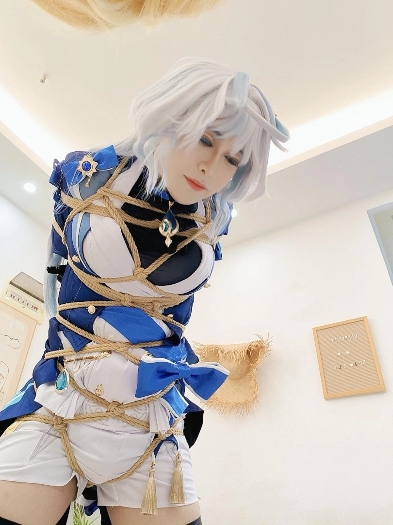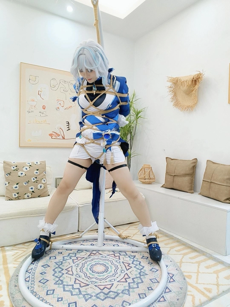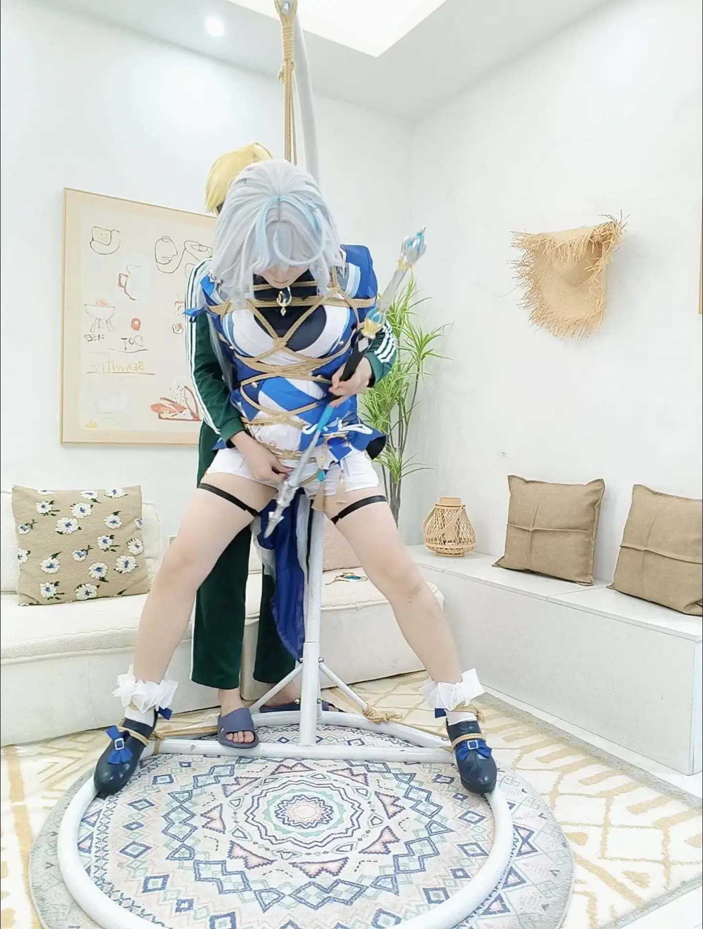 被绑架的芙宁娜在一个陌生的房间醒来,身体被绳子紧紧的束缚着。害怕的她奋力的要挣脱绳子,犹如一条蠕虫一样在床上肆意摇摆。绳子却变得更紧了,紧到陷入她的肉体!当芙宁娜发现旅行者空来的时候还以为会救她,结果却是被空进行肆无忌惮的玩弄!体验无限制的GC[X_X]!