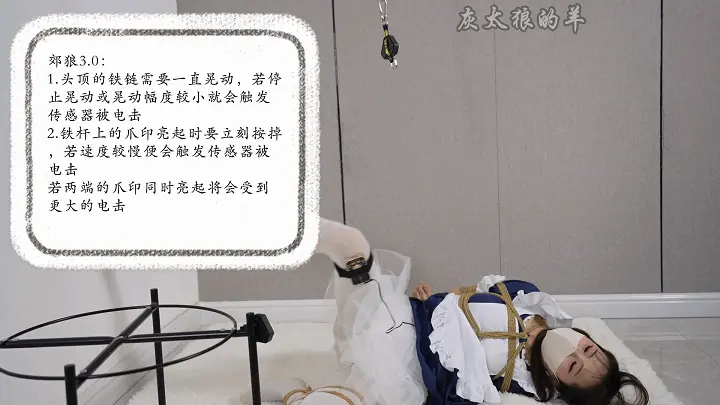 【视频时长】:00:31:59 【文件大小】:1905MB 灰太狼近期热衷使用郊狼3代设置游戏挑战,想约绑美女拍摄一期不动弹就会被电击的视频。对于模特灰太狼犹豫不定,即想要颜值在线,又要表现力好,心里虽有合适的人选,但上次的强制踮脚尖罚站 已经让希希痛苦不堪,不知道她是否会答应?电话拨通后灰太狼支支吾吾的说:“能再陪我玩一次郊狼?”希希迟钝几秒后还是爽快的答应了。隔天化着精致的妆容穿着一身女仆装来到了约定的地点,既然来了灰太狼就不客气了,直接掏出了绳子从身后捆绑,上身简单用绳子束缚住后希希还忍不住对准镜头转身展示,左腿也被折腿束缚,希希疑惑那怎么挑战游戏,都站不起来了。灰太狼将郊狼绑在了腿上说:“你要使头顶的铁链摆动起来,否则会被电击。” 【郊狼3代触发条件1:头顶的铁链需要一直晃动,若停止或晃动幅度较小会触发传感器受到电击惩罚】 听到被电击的情况,希希忍着左腿的疼痛跪起,想着只能躺着用右脚晃,或者用用头晃。害怕躺着压麻胳膊,只能用头顶铁链,像极了一个大摆钟,左右摇摆,刚开始不久希希头上的发箍就被蹭掉了,为了不让自己被电击只能坚持再坚持,但还是体力不支,摇不动了被电击的发出“好累~~啊啊啊~~疼疼~”的呻吟。灰太狼满意的点点头,心里又在萌生其他的怪点子。 【郊狼3代触发条件2:1.头顶的铁链需要一直晃动,若停止晃动或晃动幅度较小就会触发传感器受到电击惩罚 2.铁杆上的爪印亮起时要立刻按掉,若速度较慢便会触发传感器受到电击;若两端的爪印同时亮起将会受到更大的电击】 灰太狼将希希放倒,又增加了一个触发条件,只要看到铁架上的爪印亮起就要立马用脚按掉,同时还要注意头顶的爪印,被放倒的希希只能用右脚猛地摇晃它,一次耗费掉她太多的体力,两头不能兼顾的她有时被电击的哇哇叫!实在受不了后就一下子猛起摇晃几下......... ![]() ![]() ![]() ![]() ![]() ![]() ![]() ![]() ![]() ![]() ![]() ![]() ![]() ![]() ![]() ![]() ![]() ![]() ![]() ![]() ![]()