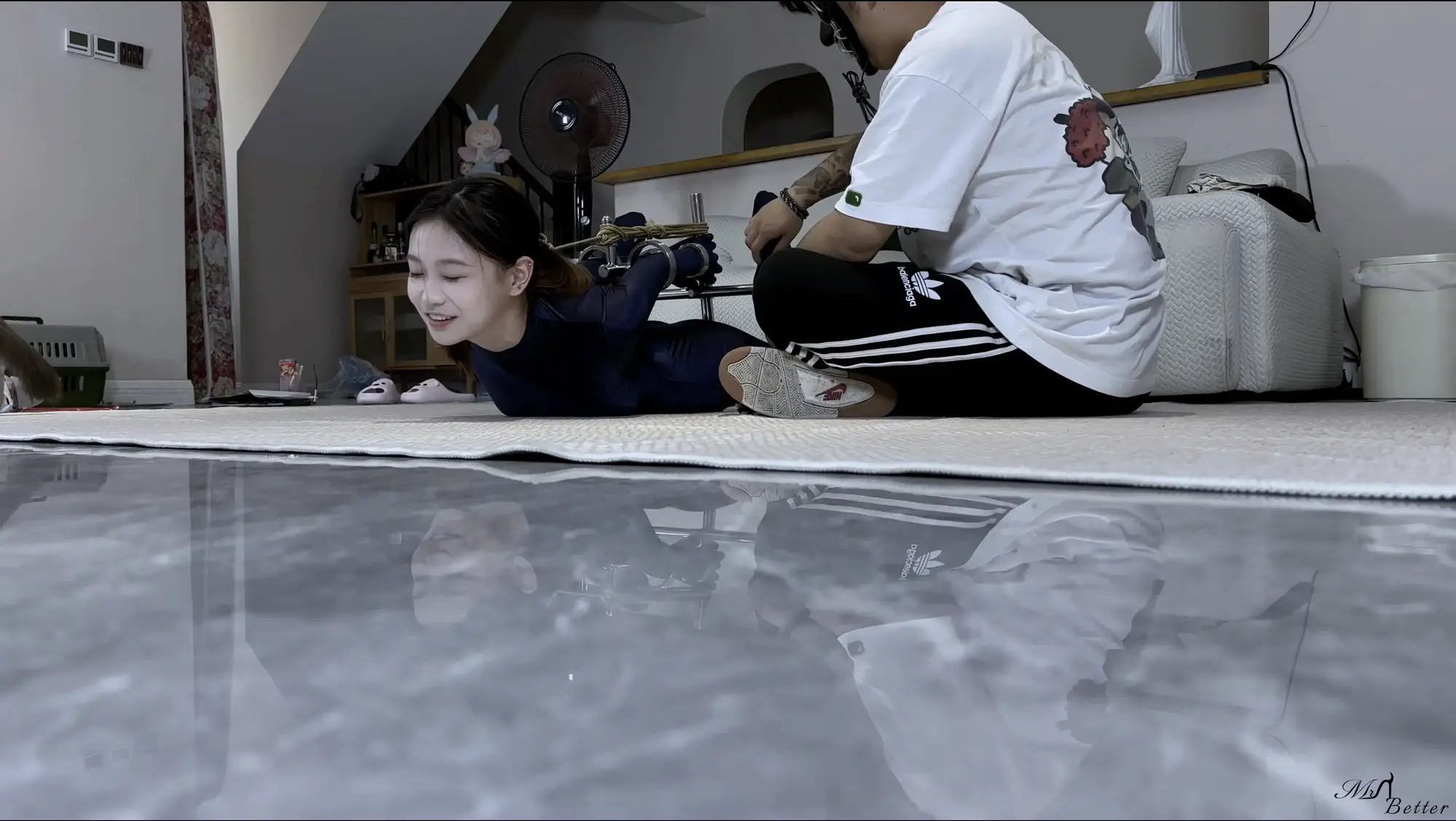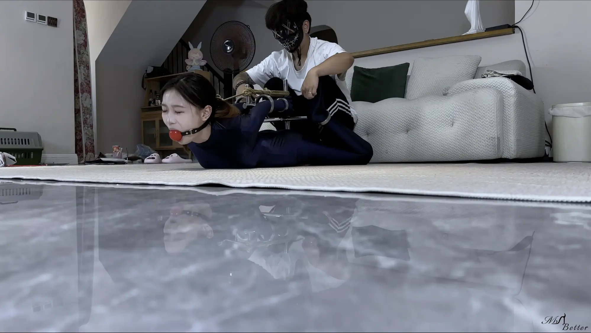 模特倩倩,穿着氨纶紧身衣,首次体验驷马固定架,物化的小奴也很不错呢。视频含穿衣、捆绑全过程,片尾有采访环节。中间有挠脚心福利。