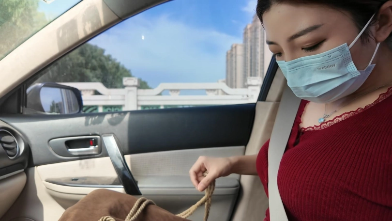 第一次带佳佳外出。车内捆绑,带项圈,下面放入td,高速服务区外面全是人,非常刺激,受不了了,带回家好好调叫调叫,顺便给小m一个惊喜,有点可惜的就没有让她带这个td逛商场...