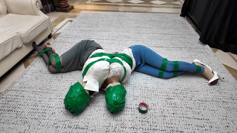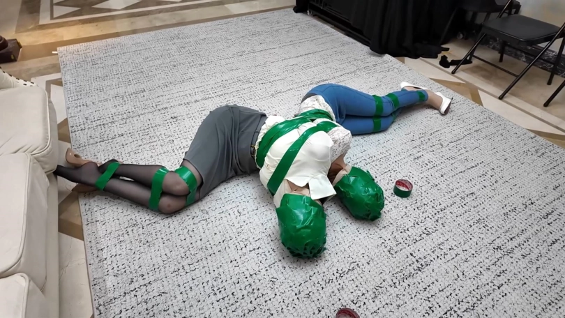 【视频时长】:00:31:03 【文件大小】:2198MB 女老总站在柱子前,双臂交叉放在柱子后被绳子绑在一起,上身和柱子绑在一起双腿先用绳子绑住脚腕和膝盖,然后和柱子缠绕在一起捆绑好。两位保镖竞选人也都被驷马捆绑起来,三人都被会不断勒紧的丝袜套住脑袋。南清一番挣扎无果后,昏了过去,女老板大声呻吟求救。最终是诺澜成功脱缚,她解开自己的捆绑后赶紧摘下老板脑袋上的丝袜与堵嘴,之后再去营救南清,最终昏了过去,这一切被女老板看在眼里。 等到诺澜再醒来时,她发现自己和南清躺在一张床上。女老板走进屋告诉她刚才的一切只是安排的考核。女老板认为诺澜的实力足够担任她的保镖,但质疑诺澜为何要解救自己的竞争对手。诺澜大义凛然地批评女老板不该如此草菅人命。于是女老板便告诉诺澜自己从事人口买卖行业,告诉诺澜想要入伙必须也要心狠手辣。诺澜果断地拒绝了女老板,这时醒来的南清却控制了诺澜配合女老板将她用胶带捆绑起来。女老板让南清来解决诺澜,于是南清用胶带将诺澜的身子和脑袋都密不透风地缠绕,将她玩弄直至晕厥。南清准备向女老板报告,却听到女老板在电话里继续让人介绍女保镖。原来女老板是假意让她入伙,内心看不上这个能力低下的人,打算解决她。 南清偷袭了女老板,结果却被女老板反杀。最终女老板也将她用同样的方法胶带捆绑起来,疲惫的她将两个被胶带裹住头的美人搂在怀里睡了过去。然而诺澜脑袋上的胶带存在缝隙,让她没有彻底晕厥。她趁机脱缚并制服了女老板。 正义的诺澜并没有对这两个毒妇心慈手软,她将二人都用胶带捆绑缠头后,将二人连缚起来,让她们在绝望中接受自己的惩罚...... ![]() ![]() ![]() ![]() ![]() ![]() ![]() ![]() ![]() ![]() ![]() ![]() ![]() ![]() ![]() ![]() ![]() ![]() ![]() ![]() ![]() ![]() ![]() ![]() ![]()