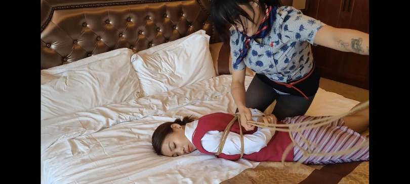 假装做前来送档案的诺米,进入曼妮的家中,并设计迷晕了她。不愿意屈服的曼妮,被逼接受闻鞋,绑在椅子上折磨的惩罚,被绑椅子上受罚的曼妮原来留了一手,诺米反被迷晕制服,迎接她的是驷马捆绑的惩罚!