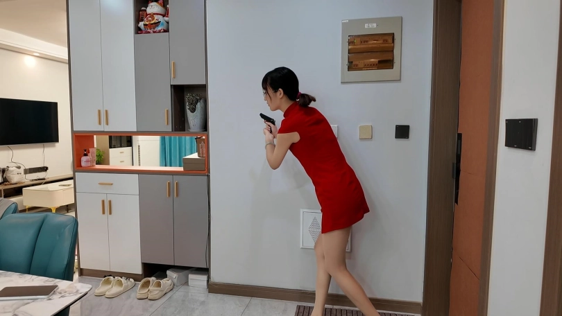 晓倩持枪潜入住宅搜查,没想到被早就埋伏的歹徒袭击捂晕,,捆绑放到房间,口球堵嘴,晓倩醒来挣扎着想逃出房间,不料被刚好赶回来的歹徒发现,再次捂晕,这次把晓倩捆绑到老虎凳上面,狠狠的挠脚心折磨,最后又把脚吊起来折磨
