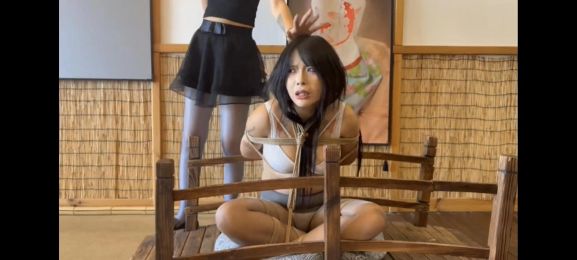 诺米借了高利贷结果还不上,债主龙哥来催债诺米想着隔壁的曼妮非常漂亮想着绑给债主抵债,诺米等待着曼妮的下班用迷药把她迷晕了,诺米知道曼妮还有一个姐姐,想让曼妮把姐姐也叫过来,曼妮不肯,诺米把曼妮绑成海老缚,通过一顿皮鞭抽打曼妮终于肯把姐姐王玉叫来,结果救妹妹心急的王玉也被诺米捉住,姐妹双双被紧紧束缚,诺米赶紧给债主龙哥打电话,两姐妹只能陷入深深地挣扎,等待被卖向远方!