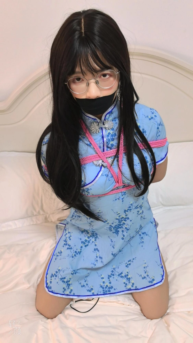 猫又蓝色旗袍长筒白丝高跟鞋的搭配,在床上被玩弄的小剧情!