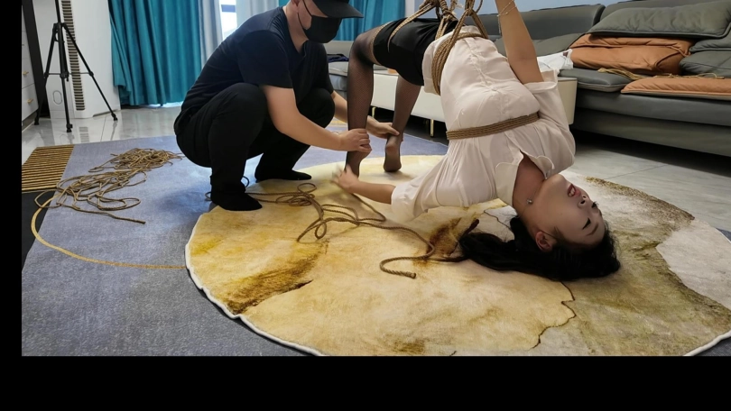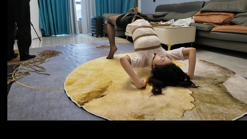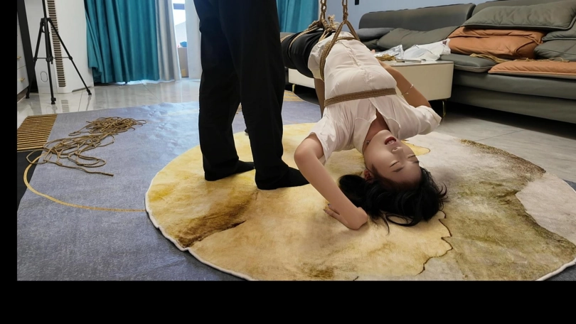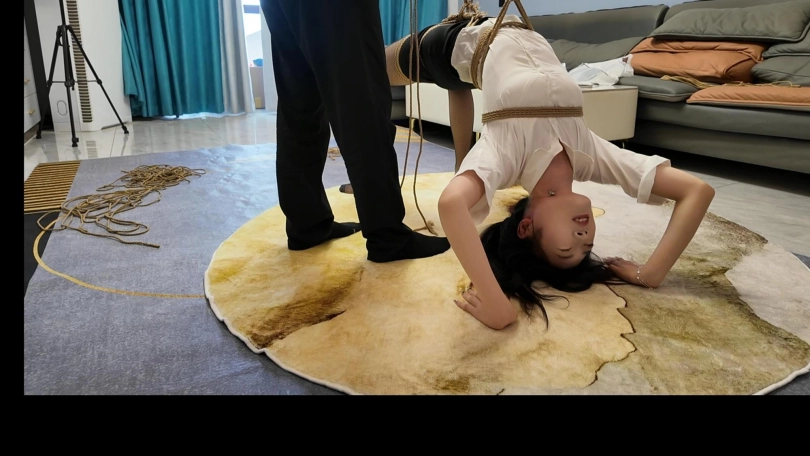 小夏反向驷马,第一次这样捆绑,这样吊,小夏柔韧性还是非常好的,完美的完成了客户的要求