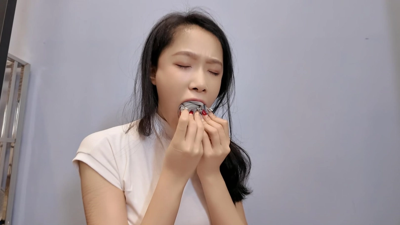 雅倩被绑床上,被人从床上带到调叫室,后手观音,双腿捆绑放置,口水流到丝袜上,接下来又被捆绑的老虎凳上,双腿高高拉起分开,这是一种最适合的调叫方式,这个姿势特别适合玩棒棒,双棒一起弄的雅倩高了无数次,放下来命令雅倩自己脱下沾满她自己口水的丝袜,塞到她自己嘴里,让她尝尝自己原味的滋味