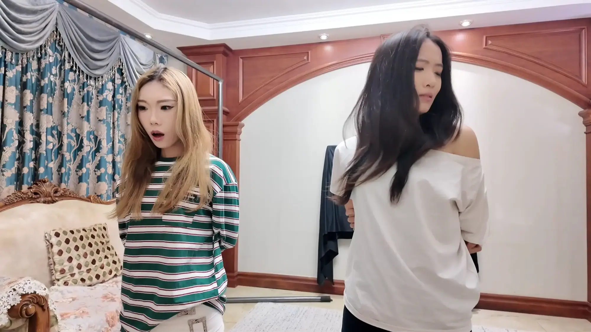 两人的表演上也是非常到位,表现出了侦探从一开始的沉着到被换装后的惊慌!