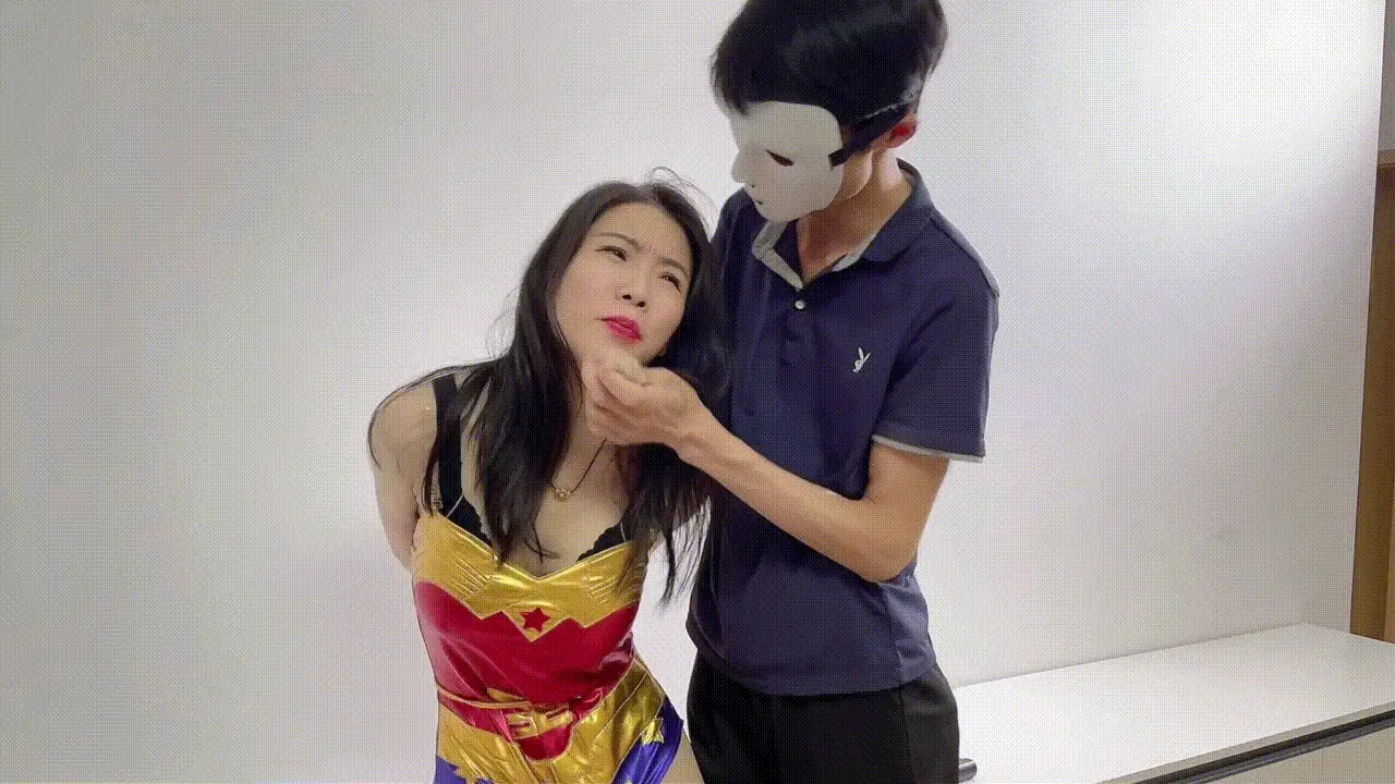 柳洋化身美丽性感的神奇女侠,面对凶恶的绑匪和不怀好意的纨绔,她会迎来被捆绑堵嘴并被绑匪抱在怀里带走的命运吗?