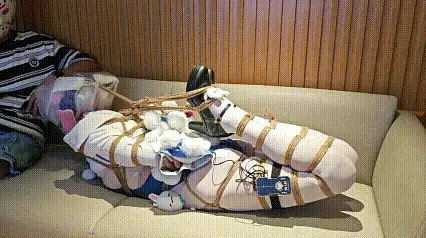 极限驷马的视觉效果加上窒息如鱼儿出水的挣扎果然是绝配。时不时的高档电击和鞭打让猎物更加努力想办法挣脱束缚不过那是不可能的事
