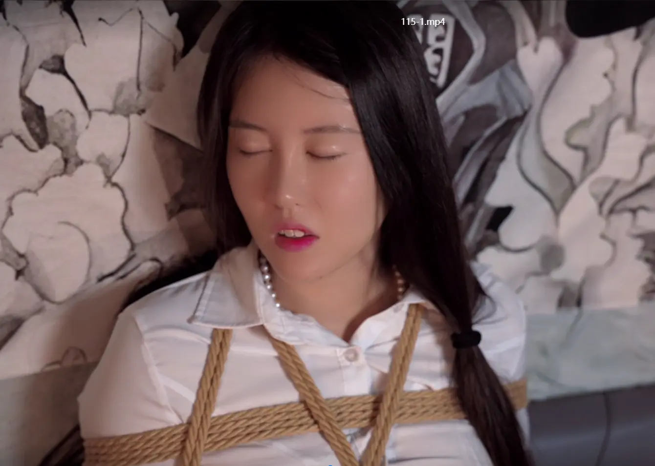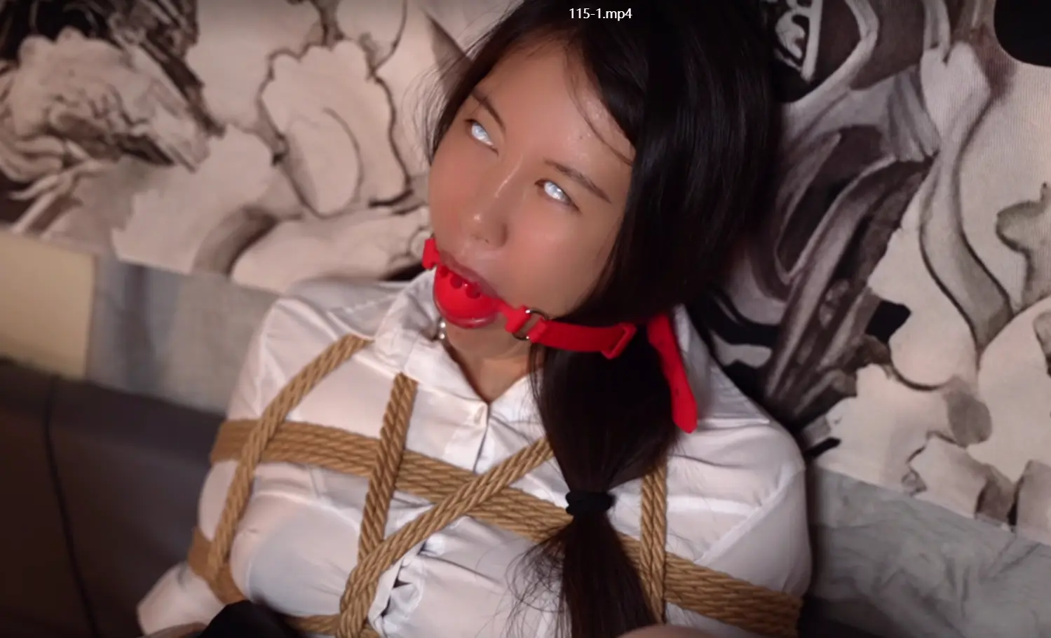 带上白色全遮隐形眼镜,用丝袜脚触摸道具,