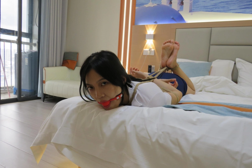 小白还真是个睡美人啊,刚绑上驷马戴上口球,我就跟她说上次有个女生也是这样绑着睡着了,她还有点不相信,没一会自己也睡着了,看着她绑着睡着的样子真的好美啊~后面叫她醒之后,她睁眼一脸懵逼,心里似乎在想着什么情况,我怎么被绑着,我不是在家里吗?哈哈哈,给她解开之后才发现,床单已经湿了一大半了。