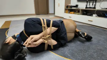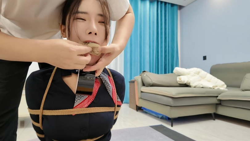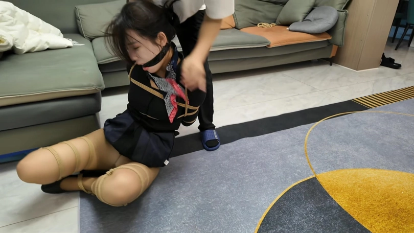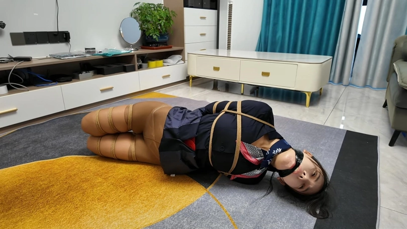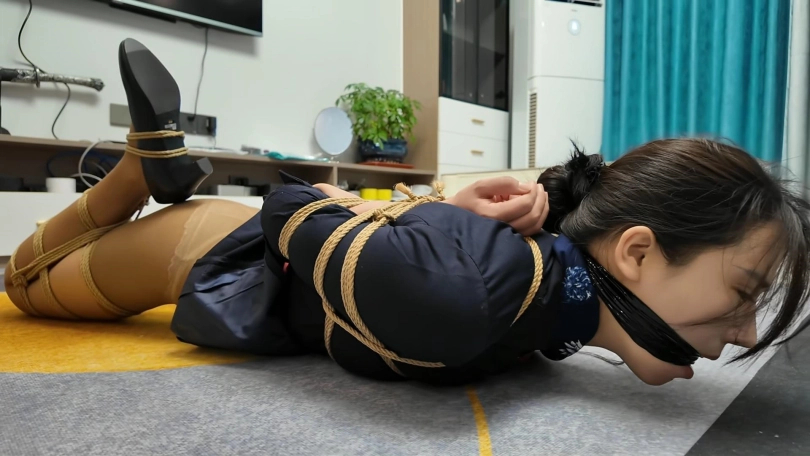 空姐十一被捆绑成后手观音M腿,堵上嘴在地上拼命挣扎,又被提溜到卫生间淋水,绳子遇水更加收紧