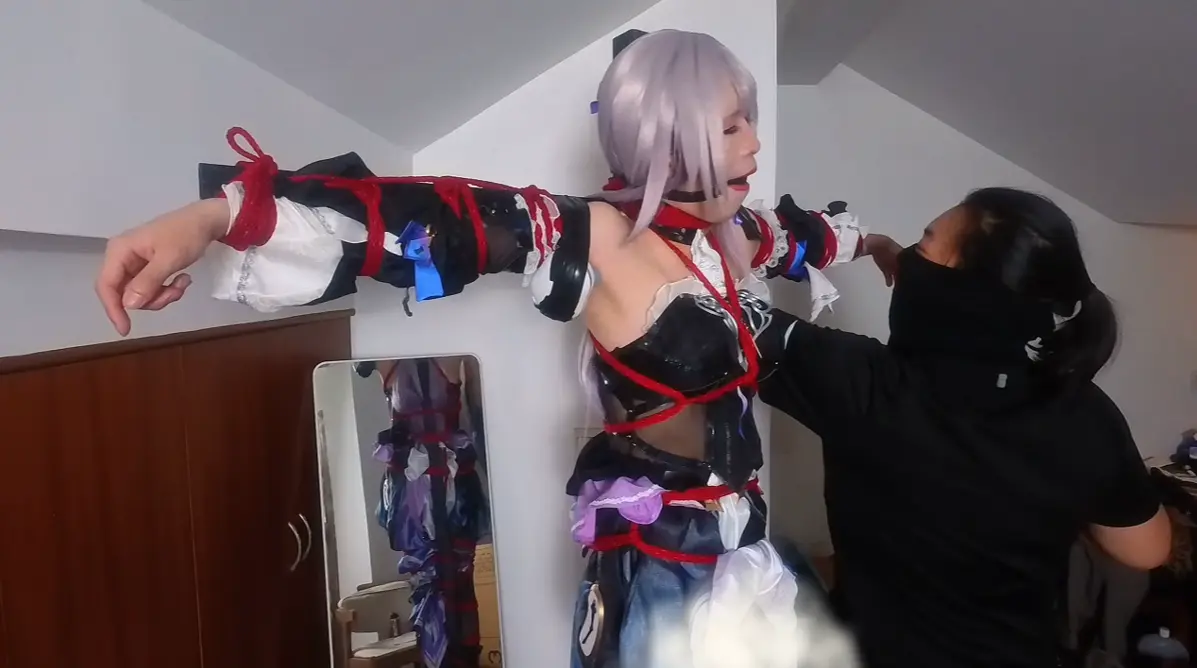 不仅被红绳紧缚在十字架上,腋下暴露出来后还被胶带缠上了按摩器,又疼又痒只能受着这样的酷刑