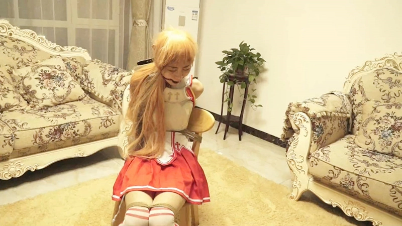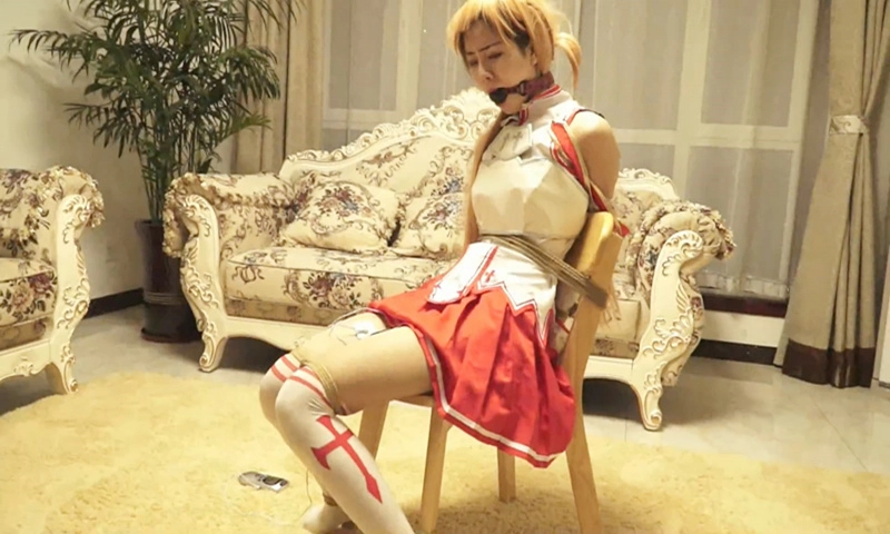 昏迷的亚丝娜被入侵者吊绑起来,不仅用绳索捆绑全身,无法动弹。更是即将要踮着脚尖承受着入侵者残忍的鞭挞……