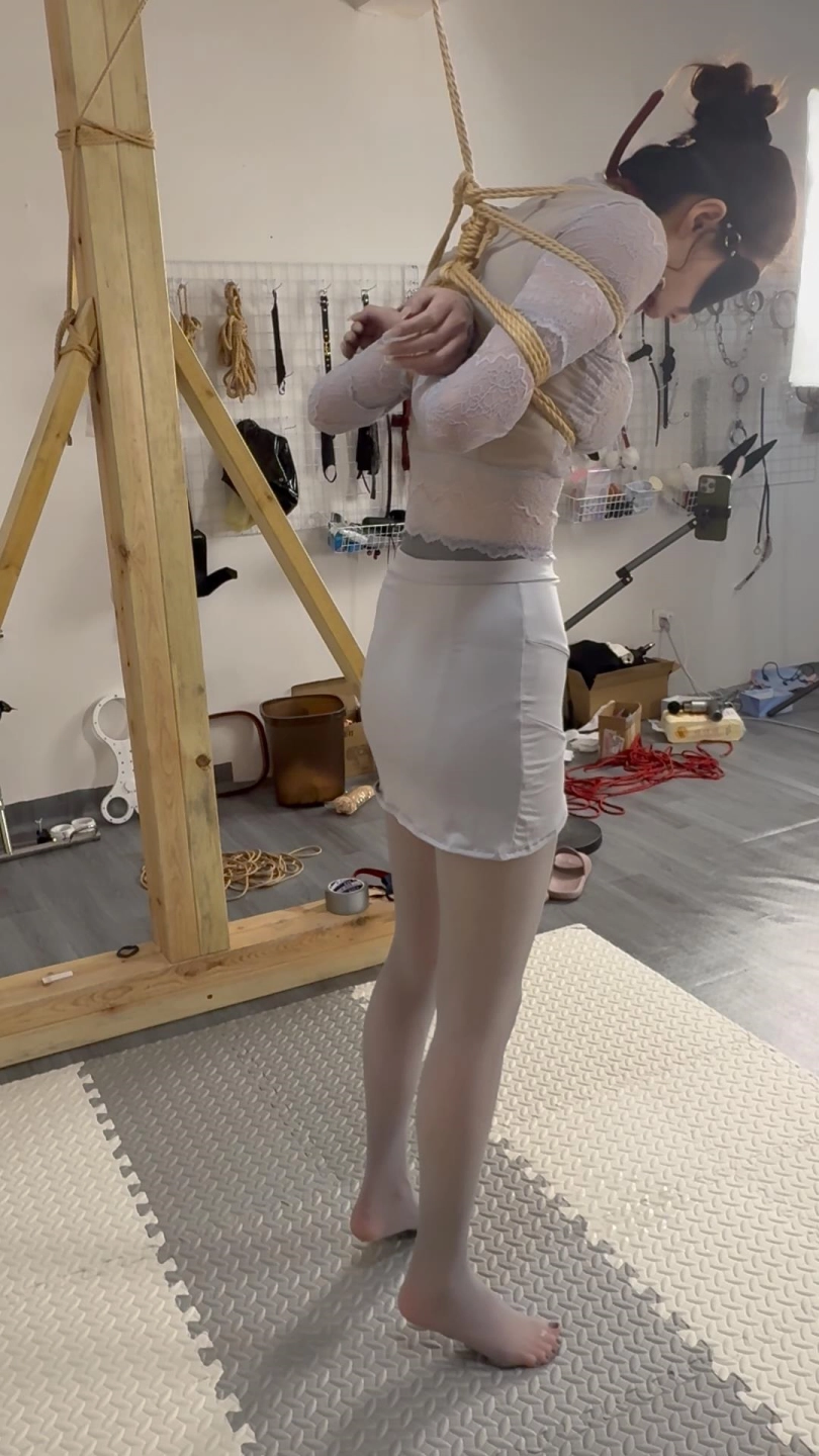 要求欲梦不知道抽卡的各类奖惩具体内容是什么,有时候未知往往是最恐怖的,但是这次欲梦的运气好像有那么一点点好,第一轮基本就是罚站(垫脚),第二三轮才有SP和扇耳光,本想让他抽点更厉害的,第一次玩就饶过她吧,下次等待她的将会是终极版本。