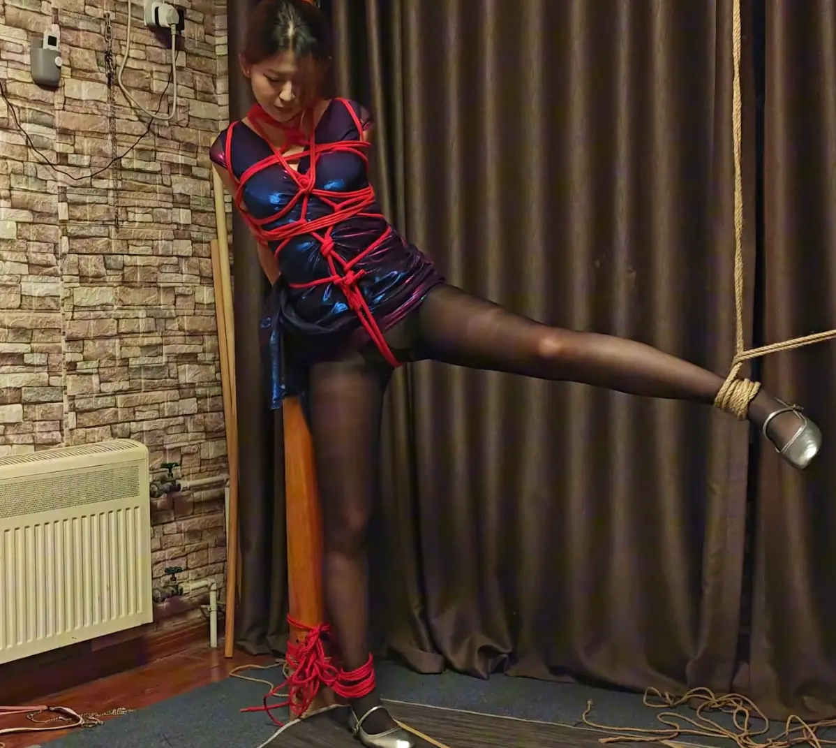刚毕业的00后黑丝舞女灿灿(身高1米68,36D,身材高挑大长腿)下了夜班后被拐骗到一个刑房。她被反绑在柱子上,年轻的身体拼命扭动,薄薄的黑丝被汗水浸湿,散发着酸酸的味道。她拼命挣扎,最终凭借着身体的柔韧性挣脱了束缚;第二次,她被驷马捆好后扔在地上,这次她能否逃脱呢?