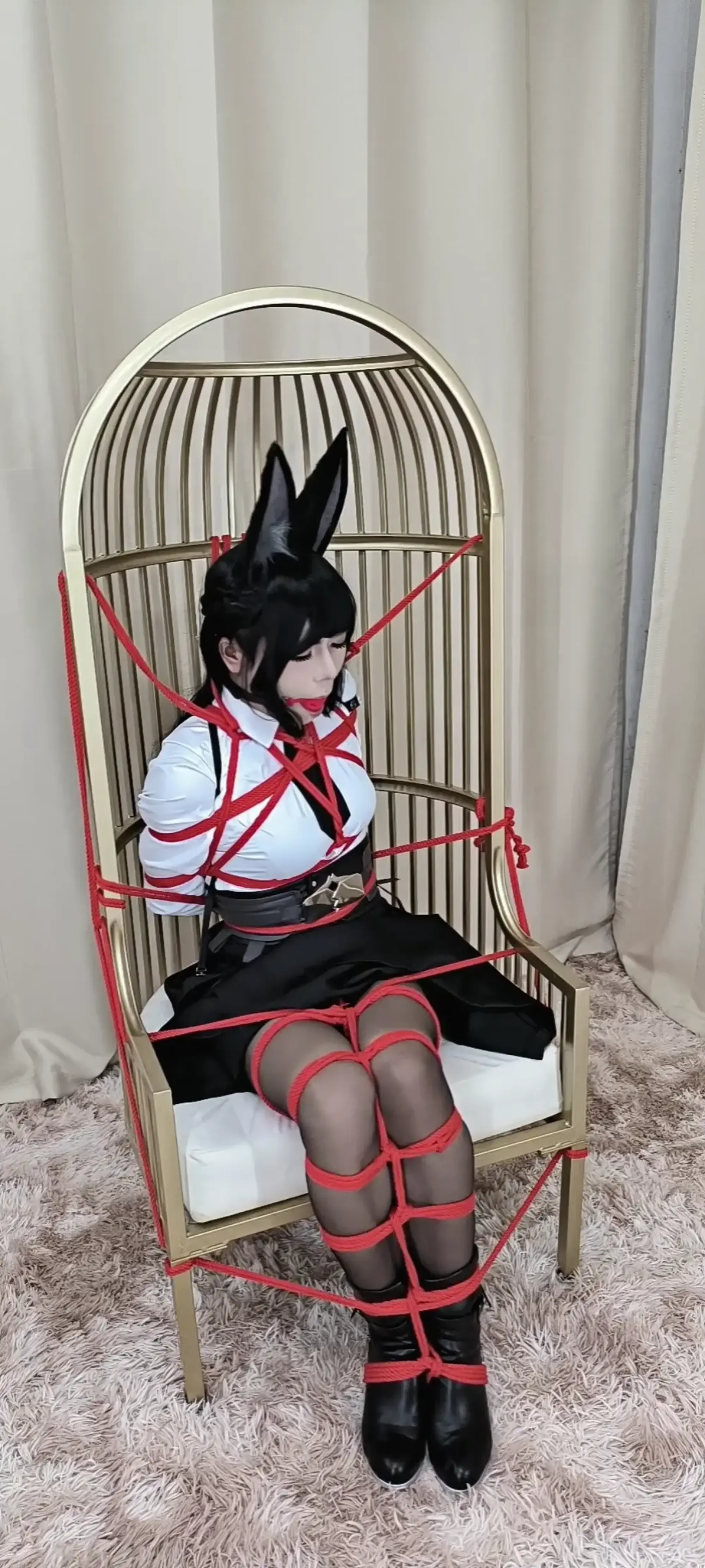 科长星见雅尝试新的修行,让柳把自己捆起来,模仿被绑架的修行。既然是绑架修行怎么少得了惩罚折磨呢。月城柳把星见雅的双腿紧紧捆起来,夹着按摩棒贴紧下面的小裤裤。被堵住嘴的星见雅只能发出呜呜叫的呻吟声。“科长修行现在才刚刚开始,一定要坚持住哦”柳邪魅一笑的拿起了鞭子,对着星见雅的屁屁就狠狠的抽了下去。