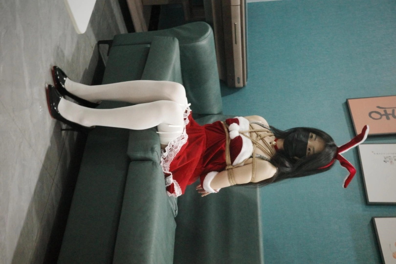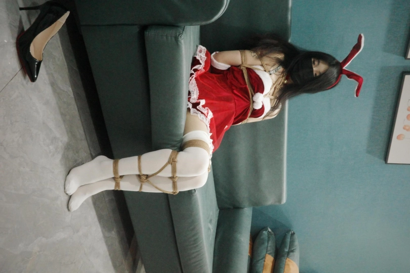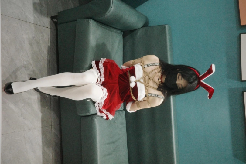 新模瑶瑶首次体验,萝莉身材,身穿圣诞礼服+白色长筒袜+高跟,有捆绑挣扎,有驷马放置,口水收集,丝足特写。