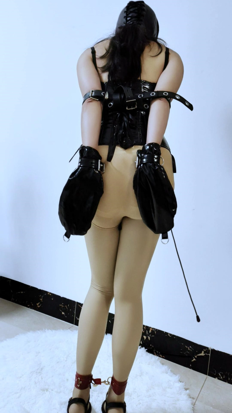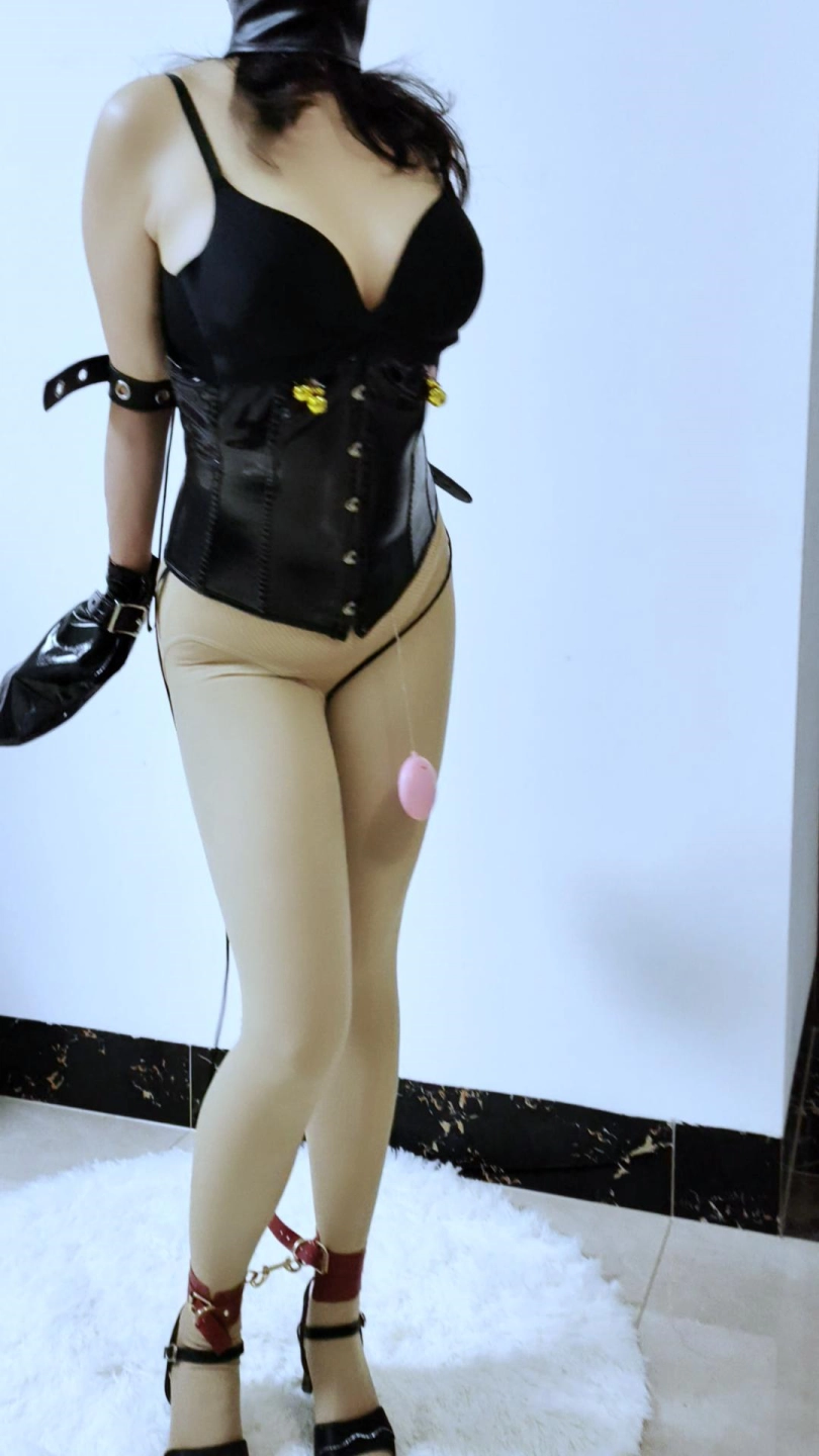 被控制的巨R女主播,被榜一带上R铃、口塞、项圈和握拳手套,手肘处被用皮带捆住,塞入快乐蛋,准备拉到小公园惩罚!