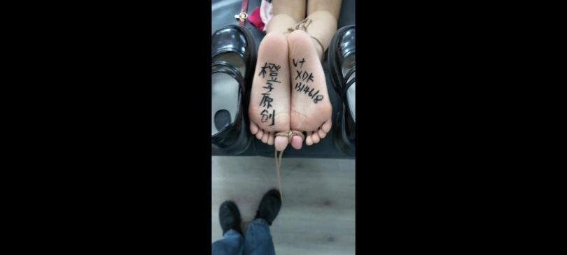 没绑够,换个姿势接着来,肉丝➕裸足特写,脚底写字,大部分tk内容,穿的鞋子太臭了,放嘴巴上闻自己的臭鞋子,全程真实挣扎。