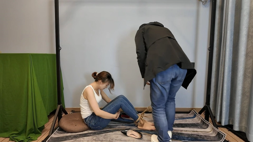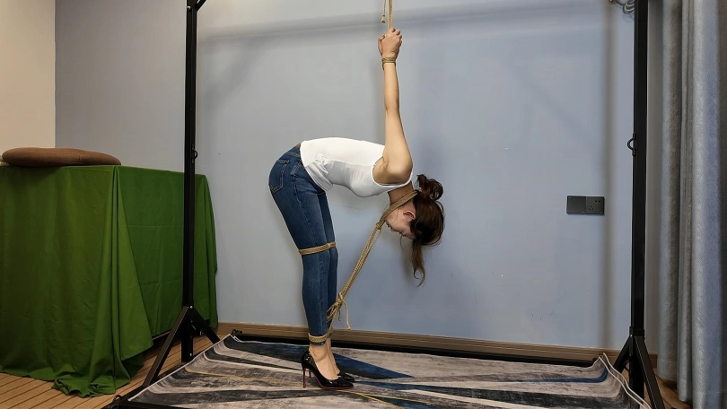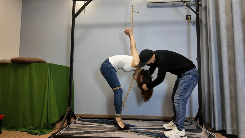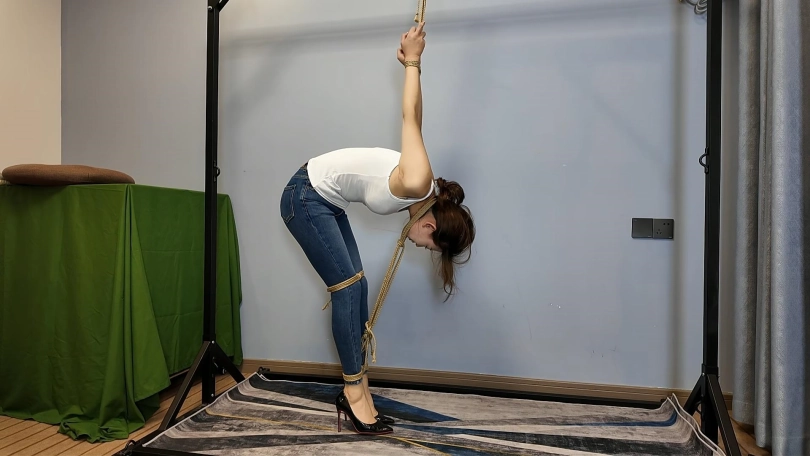 这么难受的姿势这次要一个小时,还要穿高跟鞋,这次可把晓琴累坏了,放下来的时候一下子就瘫软在地