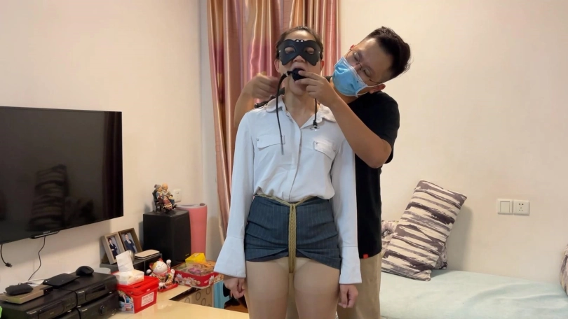 为了让洋洋M性大爆发,更快的进入状态,猫哥在出门前就给洋洋绑上股绳戴上口球,让洋洋跪在客厅等待猫哥下班;M性上身的洋洋在猫哥回家的第一时间爬到房间,跪在床上,屁股撅着老高,等待猫哥调教,捆绑完毕后给了洋洋满足的奖励最终到达顶峰