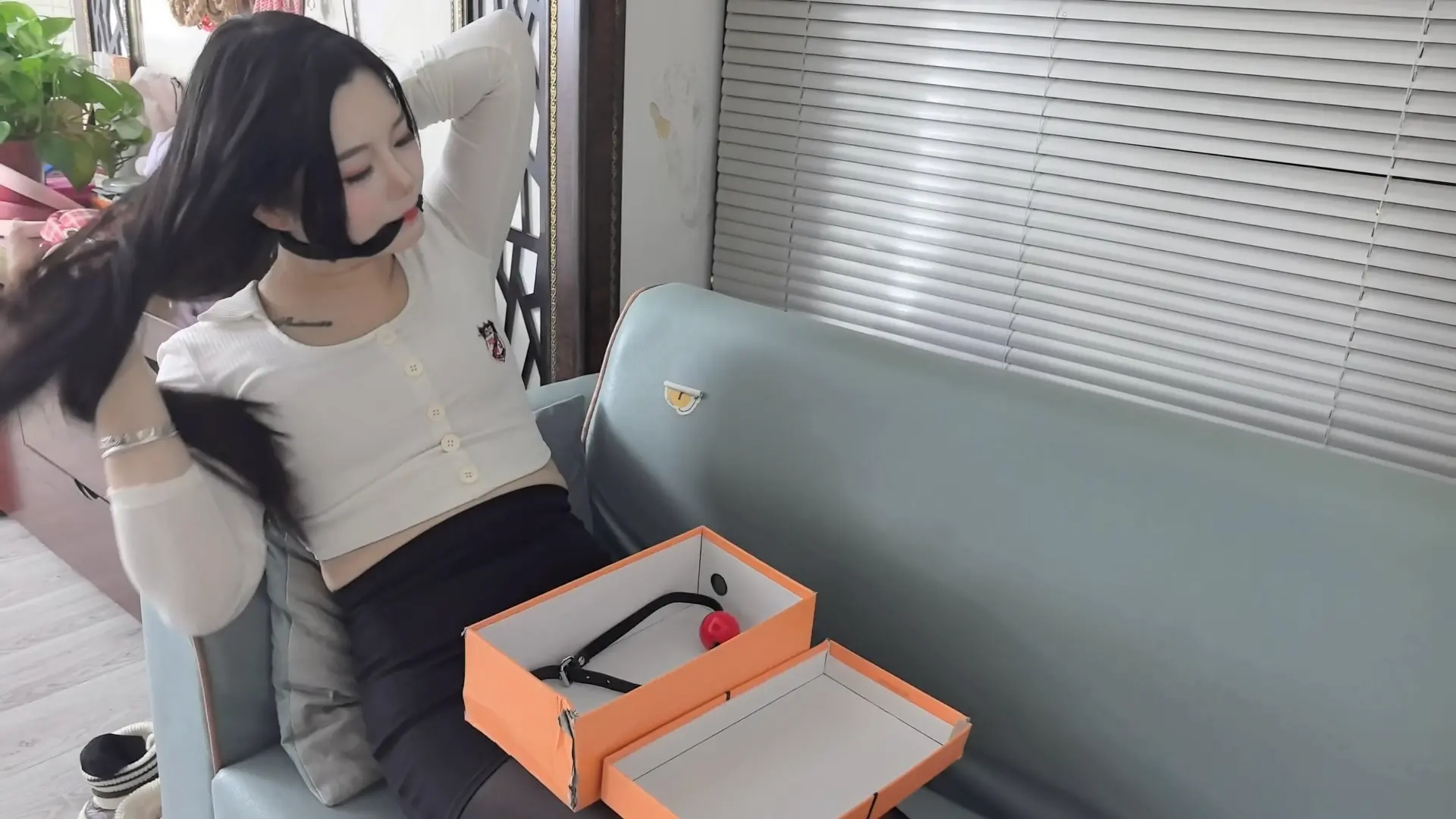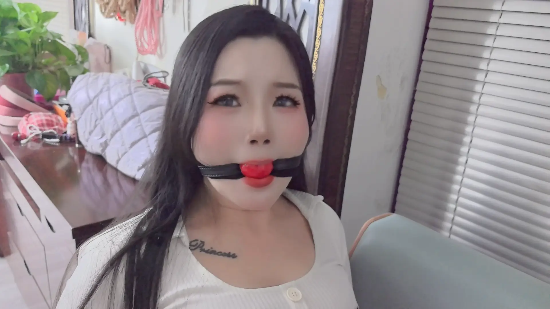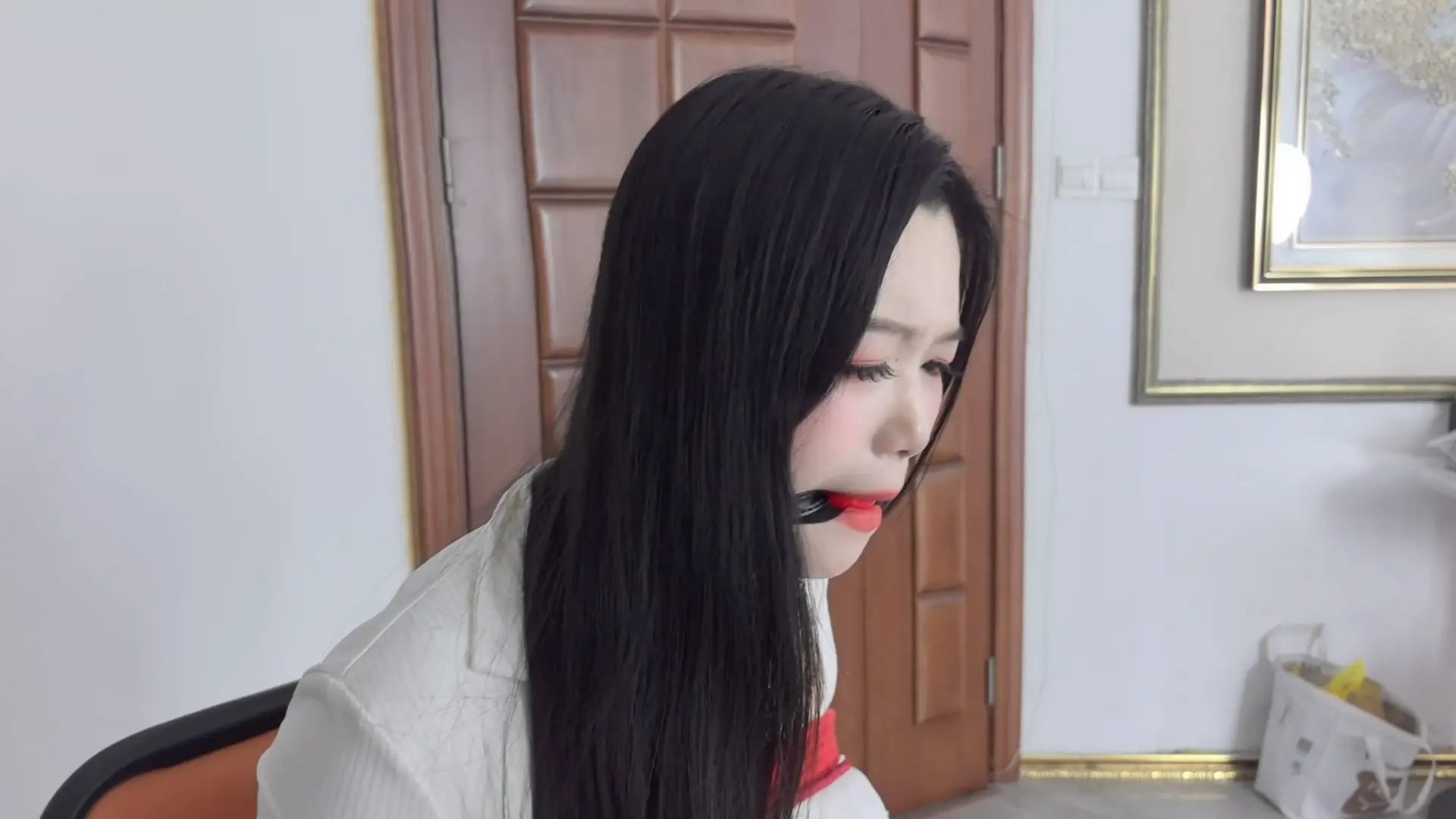 闲来无事的子墨想玩自缚,捆绑好双腿丝并袜勒嘴后,无意中发现一个奇怪的口球。在好奇心驱使下,子墨戴上口球,结果想不到的紧缚诅咒也接踵而至。挣扎无果求救无望的她,也只能接受诅咒带来的命运!