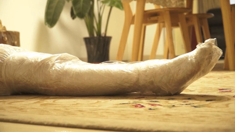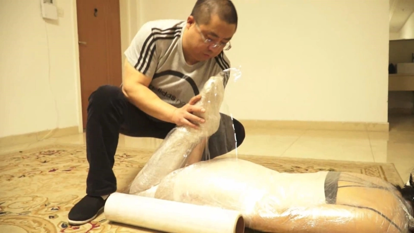 等到醒来时,林丹丹发现自己全身已被保鲜膜全包住了。
