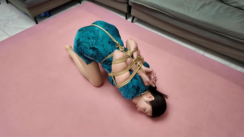佳佳的柔韧性越来越好了,今天给她来一个极限后手观音,在加上M腿,铁链牵着爬行