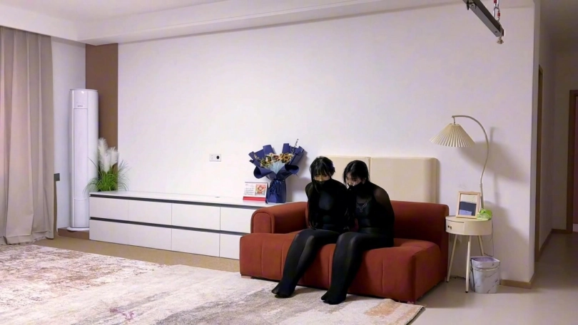 蒙面人回家,发现她们一个在试着开门,一个在试着用丝袜脚开手机。看2个人这么久了还不老实,蒙面人终于受不了了。她买了重度精神病人用的拘束服,蒙面人开心的介绍说:这是全包式立体剪裁,从指尖到脚踝无缝包裹,贴合身形不留一丝挣脱空隙。越挣扎反而会收缩的越紧。 2个丝袜人茧在地上蠕动爬行挣扎。