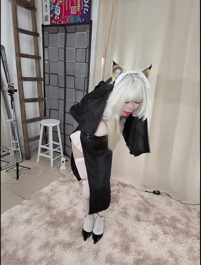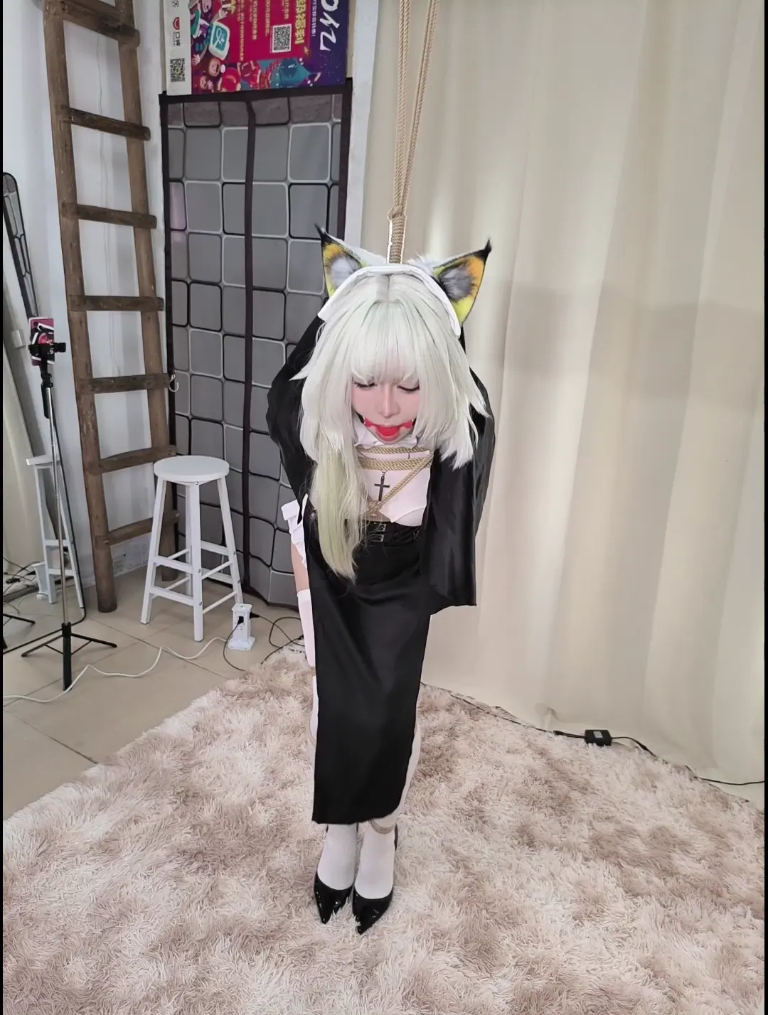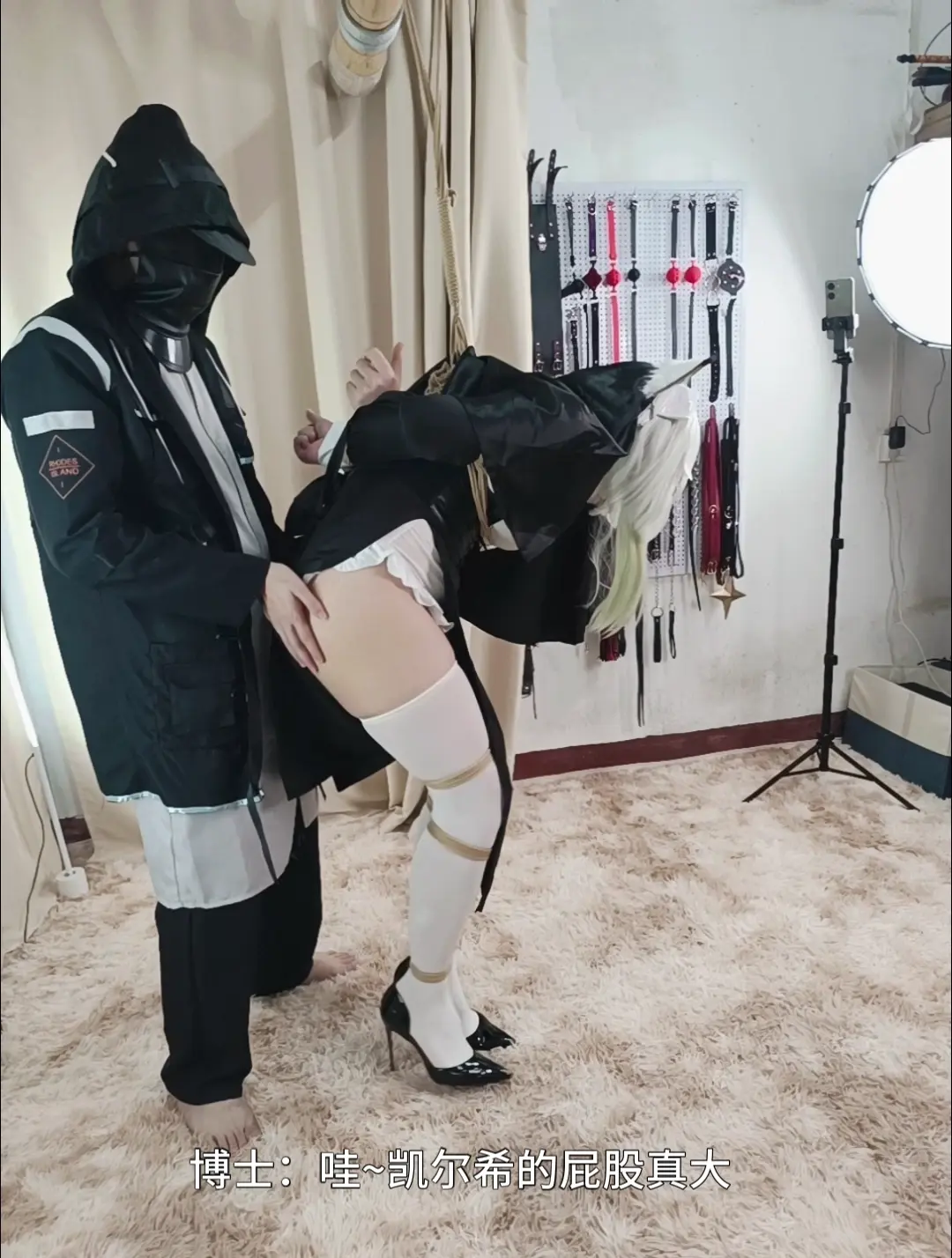 凯尔希身穿修女服,全身被紧紧绑着吊起,犹如被审判的巫女。无助的挣扎只会让绳子更紧。博士拿着鞭子,打量这凯尔希。说道:“牢猫作为主人的宠物,居然敢反抗你的主人看来不好好惩罚一下你,是不会乖乖听话了。相信这条鞭子会让你变得听话的。只要你好好听话,主人会给你奖励的,你看这逗猫棒(振动棒)你是不是很喜欢。哦齁~那是你能发出唯一的声音”