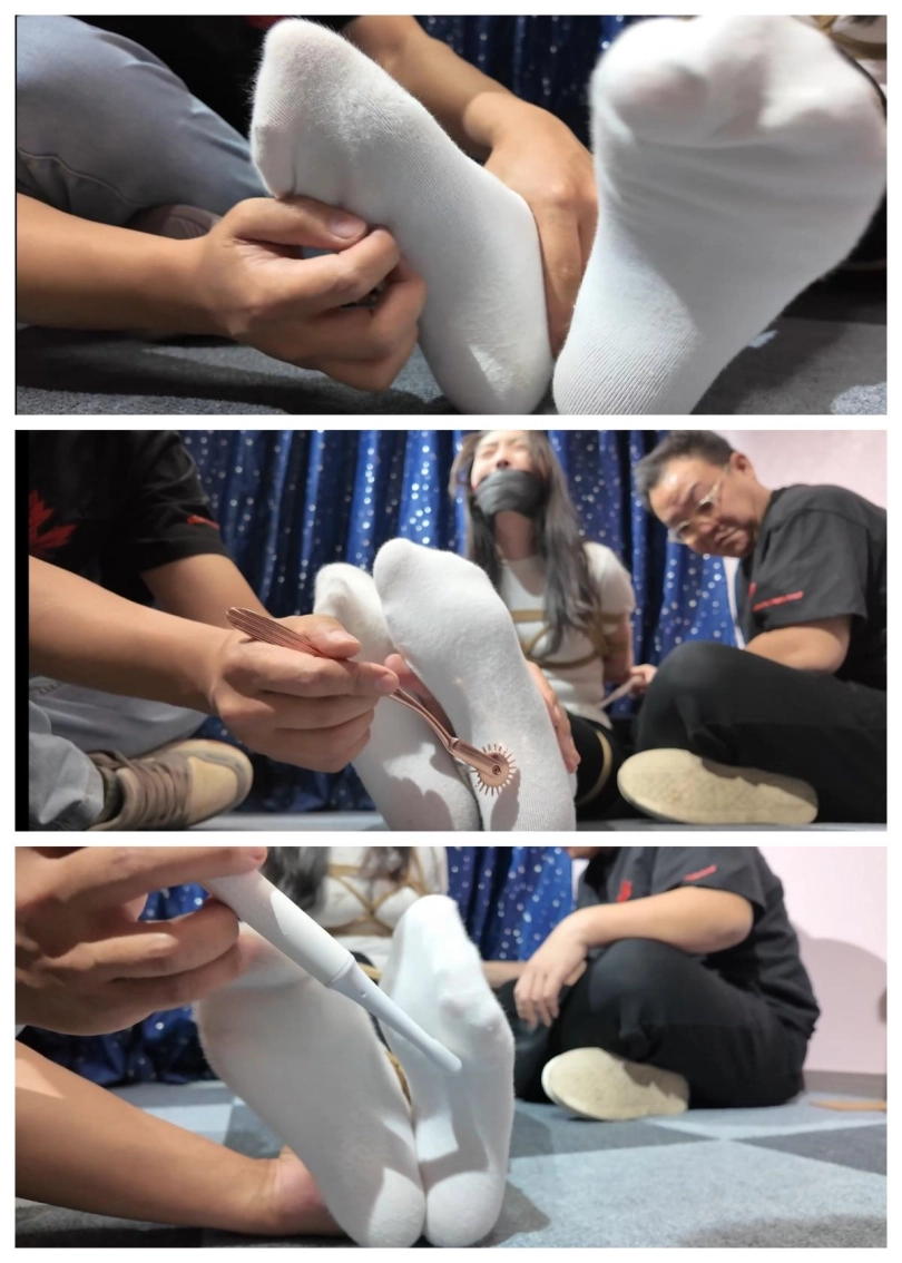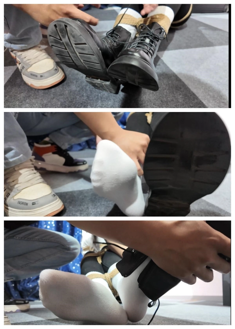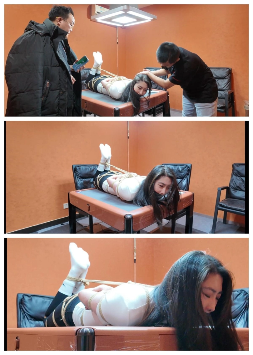 【视频时长】:00:27:08 【文件大小】:2474.68 MB 由高个子模特:雨诺倾力出演。本片含白量极高,足以让喜欢白袜加靴子的同好大饱眼福,给春节假期添加乐趣! 剧情介绍:接“不劳而获•大绑特绑(第二集)”,故事开始,两名坏蛋正在巢穴悠然自得的喝着茶聊着很龌蹉的话题,镜头一转,探清虚实的女保镖雨诺偷偷摸进了房间(剧情和第二集接上了,推荐大家从第一集开始看起)。进入房间的雨诺小心翼翼的摸着搜索情况,可她那里知道,她的一举一动都在坏蛋的监控下!镜头再次给到两坏蛋,口罩坏蛋看着雨诺的举动满脑子就想着快点去把她给解决了,而眼睛坏蛋坏点子比较多,提议让自己假装大声说话吸引美女雨诺注意,虽然让口罩坏蛋前去偷袭,要抓活的!一拍即合,二坏蛋就按照计划行动。此时雨诺被眼镜坏蛋大声说话的声音吸引,来到房间门口观察着,只观察屋内的情况,却没发觉有一只黑手已经向她靠近!摸到雨诺身后的口罩坏蛋不费吹灰之力就把雨诺制服,抓获!然后用枪顶着雨诺的头部,让雨诺高举双手像个俘虏一样往眼镜坏蛋处走去,来到眼镜坏蛋跟着,眼镜坏蛋说到:给我跪下!雨诺骂到:我才不跪你们这些混蛋呢!眼镜坏蛋见雨诺不知好歹,跟口罩坏蛋说到:让她跪下!口罩坏蛋立马上前往雨诺的膝盖处就是一脚!剧烈的疼痛要雨诺膝盖弯曲,让她只能跪下地上!虽然口罩坏蛋又说到:给我双手抱头!不然就一枪打死你!雨诺照做,然后眼镜坏蛋走上前,问她道:快说出你同伴的位置,我可以考虑放了你!雨诺说到:你做梦吧!我是怎样都不会说的!眼镜坏蛋说跟口罩坏蛋说到:别跟她废话了,先把她绑起来,我有办法收拾她。随后将绳子抛给口罩坏蛋,雨诺拼命挣扎,可不是两个坏蛋的对手,被两坏蛋制服并结结实实的捆绑起来!镜头一转,雨诺被捆绑在地上,眼镜坏蛋将一双袜子揉成团,然后口罩坏蛋一只手摁住了雨诺的头,一只手将雨诺的嘴巴捏开张到最大,然后眼镜坏蛋将袜子揉成一团往雨诺的嘴里塞!将雨诺嘴巴塞满后,又在雨诺嘴巴上封了三张红色胶带,被堵嘴加封嘴的雨诺只能呜呜呜的叫着,即便如此,眼镜坏蛋还觉得雨诺的“呜呜呜”声太大,于是拿来了黑色绷带,让口罩坏蛋扯住雨诺的头发,让她抬头,然后眼镜坏蛋用黑色绷带将雨诺嘴巴紧紧缠绕住!雨诺的呜呜呜声逐渐变小。(堵嘴封嘴过程有特写)捆绑堵嘴完后,两坏蛋觉得好久没得玩弄美女了,这送上门的一个可得好好玩玩!于是,口罩坏蛋解开了雨诺的鞋带,拉下拉链,把雨诺脚上的马丁靴脱了下来,露出一双厚棉白袜!(此处有脱鞋及棉白袜特写)露出白袜后,由口罩坏蛋负责雨诺脚心的挠痒痒,眼镜坏蛋负责挠雨诺腰上的痒痒!二人分工合作单单只是用手就把雨诺挠得受不了!随后二人觉得手还不够劲头,还用起了道具(电动牙刷,小齿轮,细铁丝)对着雨诺的脖子,腰子,脚心等敏感部位就是一顿挠!把雨诺折腾得呜呜呜呜并费力挣扎,可手脚被捆绑结实,嘴巴又被严密封堵的雨诺,除了呜呜呜叫和扭动身子外还能做些什么呢?在地上挠得不过瘾的两坏蛋又想了个损招,让雨诺跪下椅子上,然后接着挠她! 面对新一轮挠痒痒折磨,雨诺只能尽力的呜呜呜含糊不清地向二人求饶,可能让二人停下来的只有他们自己累了!玩弄了一会,二坏蛋累了,停止了对雨诺的挠痒痒,但并不打算让雨诺踹口气!眼镜坏蛋搜出了雨诺的手机,然后让口罩坏蛋去控制雨诺,他则给二人拍照,拍完雨诺被捆绑堵嘴的照片后,二人将雨诺捆成驷马倒攒蹄放置在麻将桌上,然后又将雨诺被驷马倒攒蹄结实捆绑照拍了下来,将这些照片打包发给了雨诺的搭档柠琪,并发文说到:你好搭档在我们手上,收到消息后将那个小骚货的女儿给我们绑来!不然我们就把你的美女搭档给做了!拍完照片,二人再次检查了雨诺身上的绳子是否结实后,离开房间,留被驷马倒攒蹄结实捆绑的雨诺在麻将桌上挣扎并发出呜呜呜呜声音。 ![]() ![]() ![]() ![]() ![]() ![]() ![]() ![]() ![]() ![]()