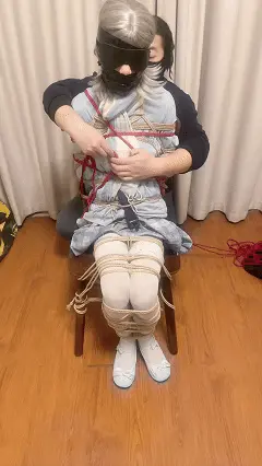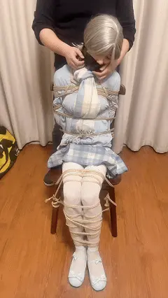 白丝银发小南娘被几十米长的绳子交错紧紧捆绑在椅子上动弹不得