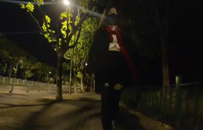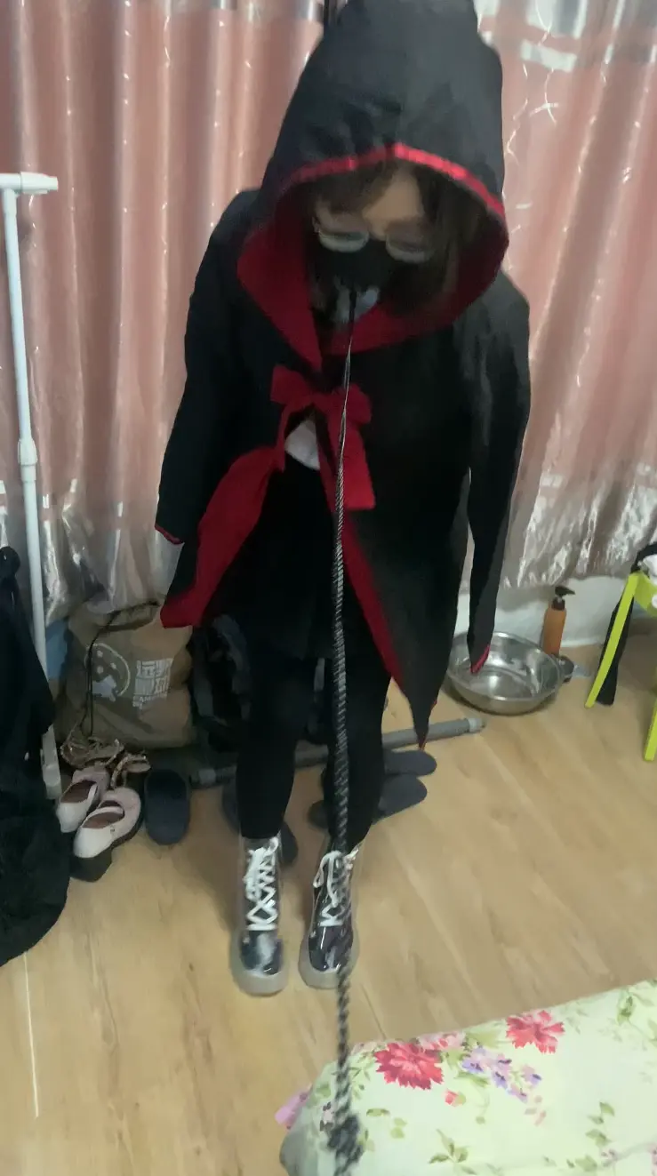 学生制服,短裙,黑丝过膝袜,透明短靴。前面穿戴好贞操锁,后面塞上尾巴,贴好郊狼,身体再被紧紧绑缚起来,披上斗篷就出门吧