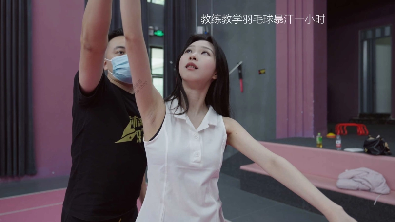 剧情故事:教练教腿腿打羽毛球,暴汗运动后跟着她回到家。