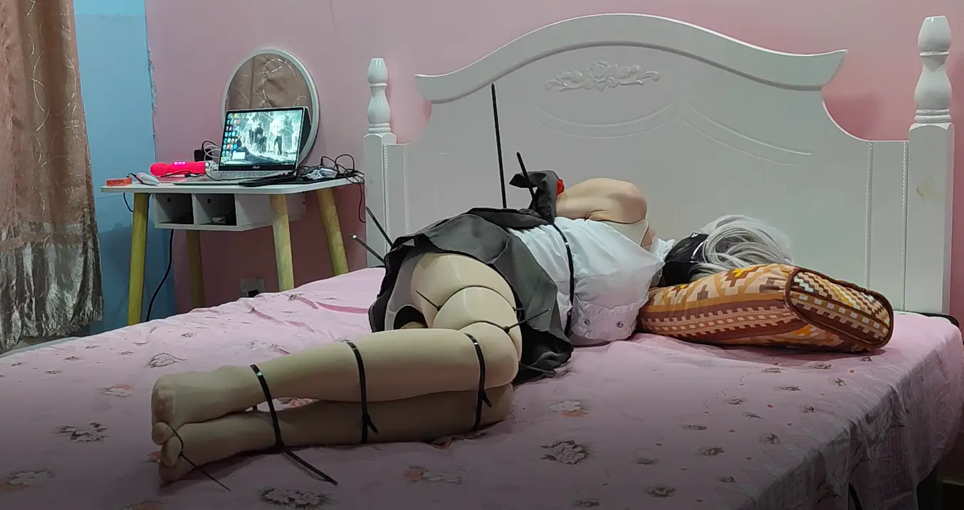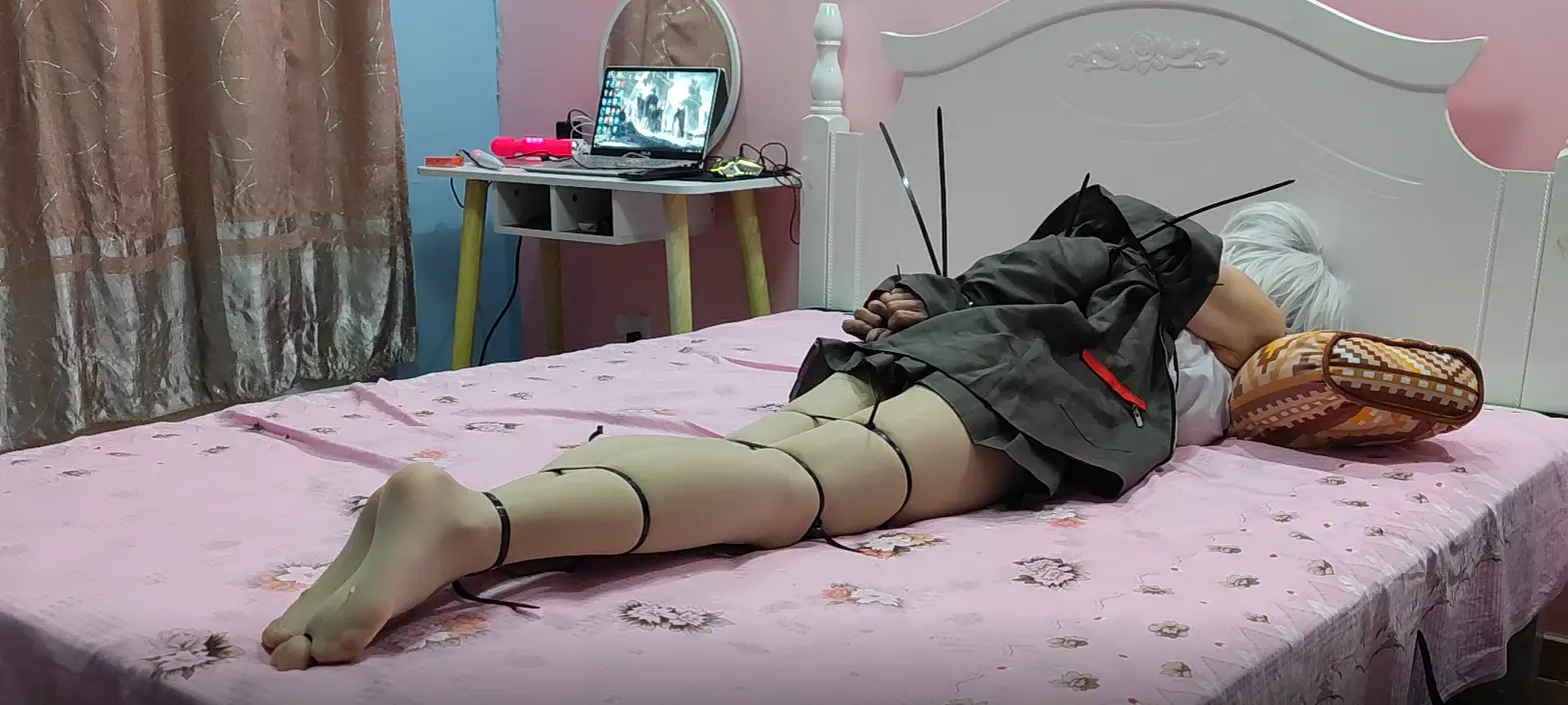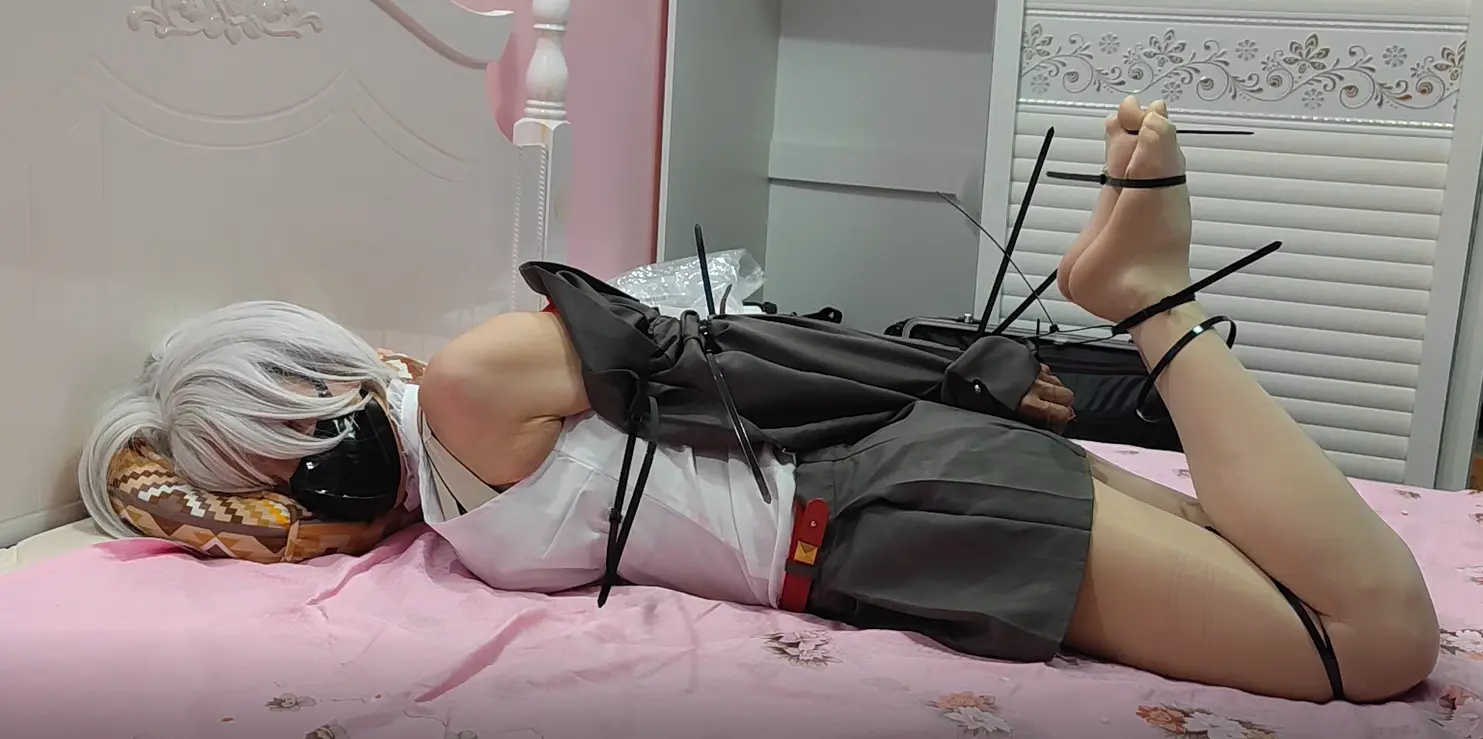战败被抓住,并且用扎带捆住全身,深深地陷进了肉里,稍稍一活动就会全身生疼,只能乖乖地被挠痒痒
