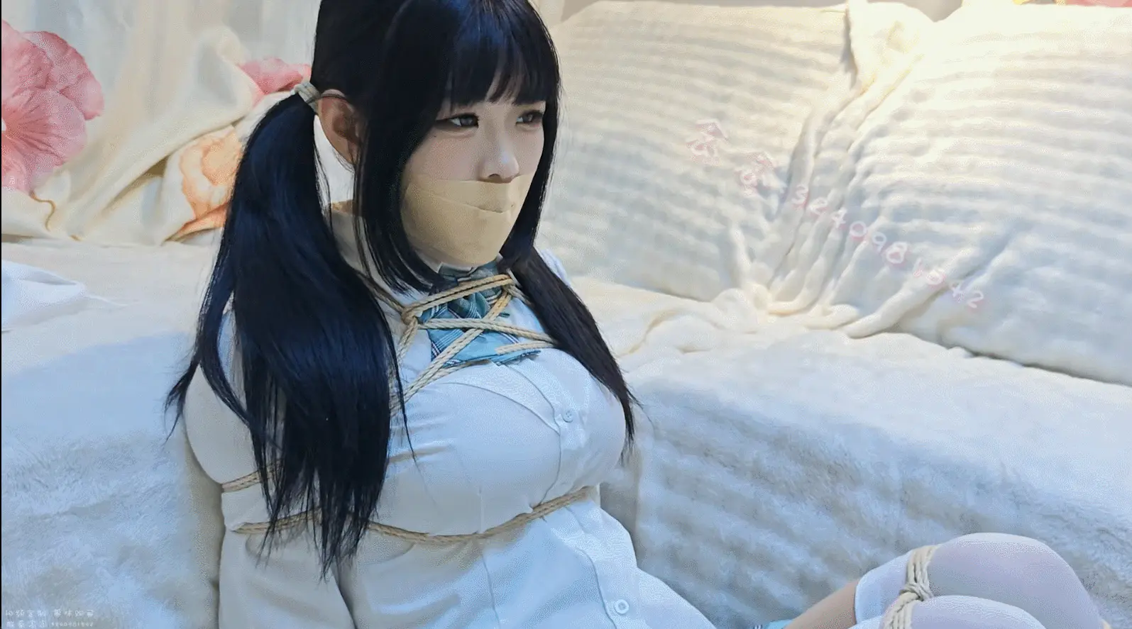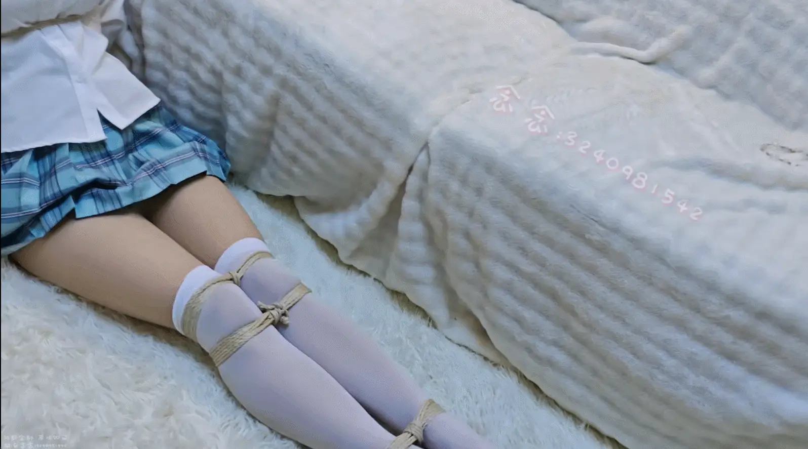 内容是20分钟的捆绑放置挣扎,服装是jk配上丝袜,外面套了一条白色过膝,是很喜欢的搭配,嘴巴是塞了自己穿过的袜子然后再封好胶带