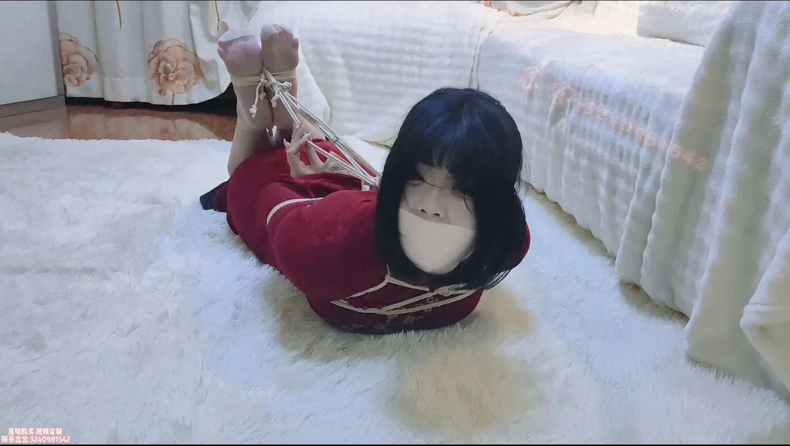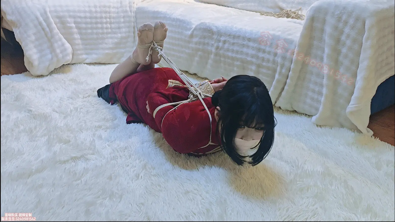 绑法是很经典的日式后高手和并腿,绑膝盖,脚踝和脚掌,驷马连接在脚掌上,话说每次驷马连在脚掌上束缚感都会更强呢。然后还是带上了很折磨的啵啵贝00