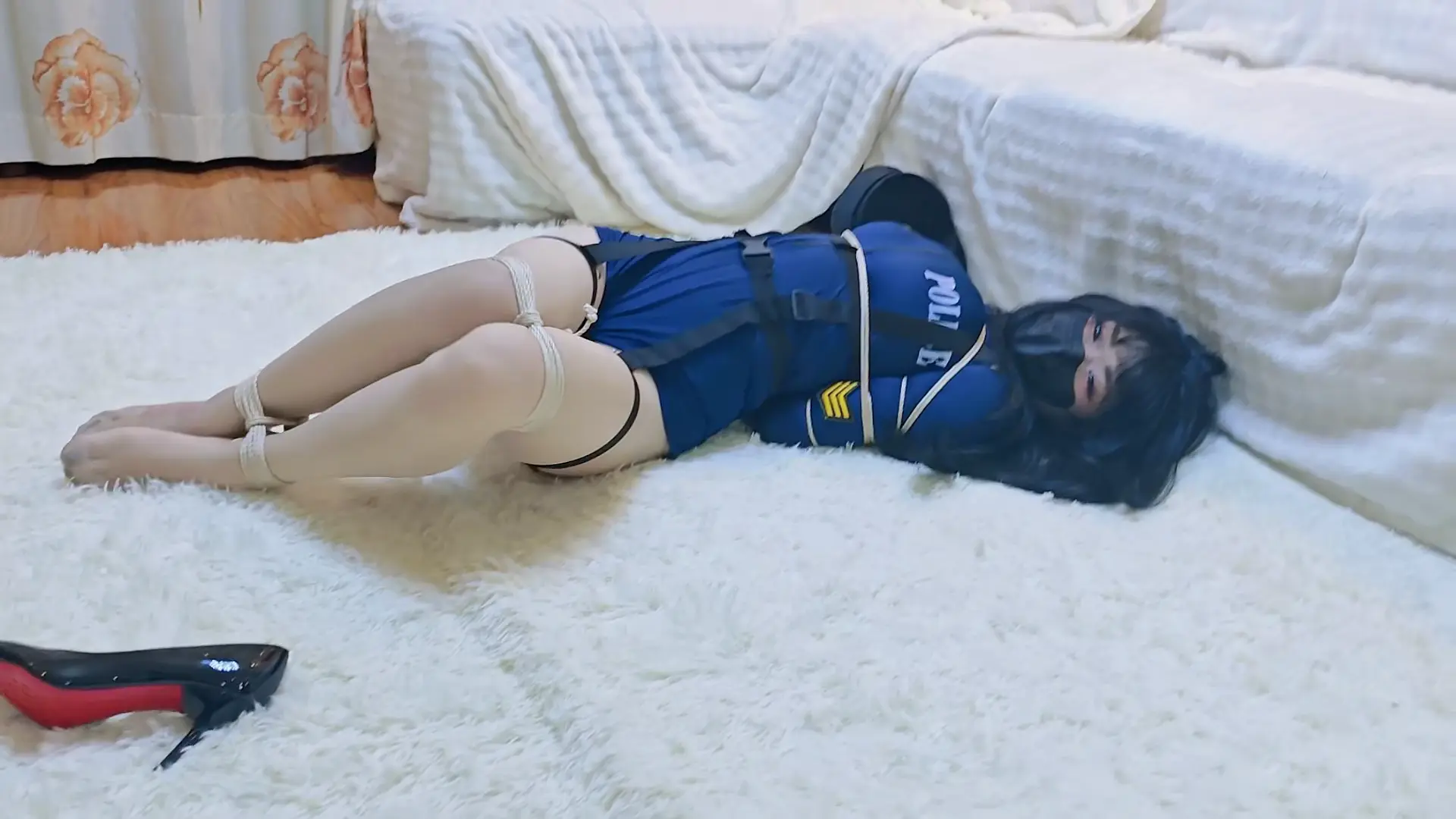 小女j制服,脑内剧情是被坏人抓住绑起来尝试逃脱的女j,鞋子试了好多都感觉不太合适,就也配了一双新买的红底高跟鞋,不知道会不会有些出戏,毕竟不会真的穿高跟鞋执行任务叭hh。