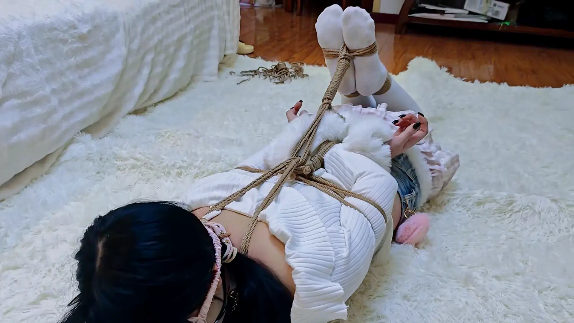 感觉好久没有认真绑过驷马了所以专门拍一期(因为上次摔倒所以停止了..),服装是之前穿过的一身衣服,没有穿鞋子,驷马的绳子连在脚掌上。