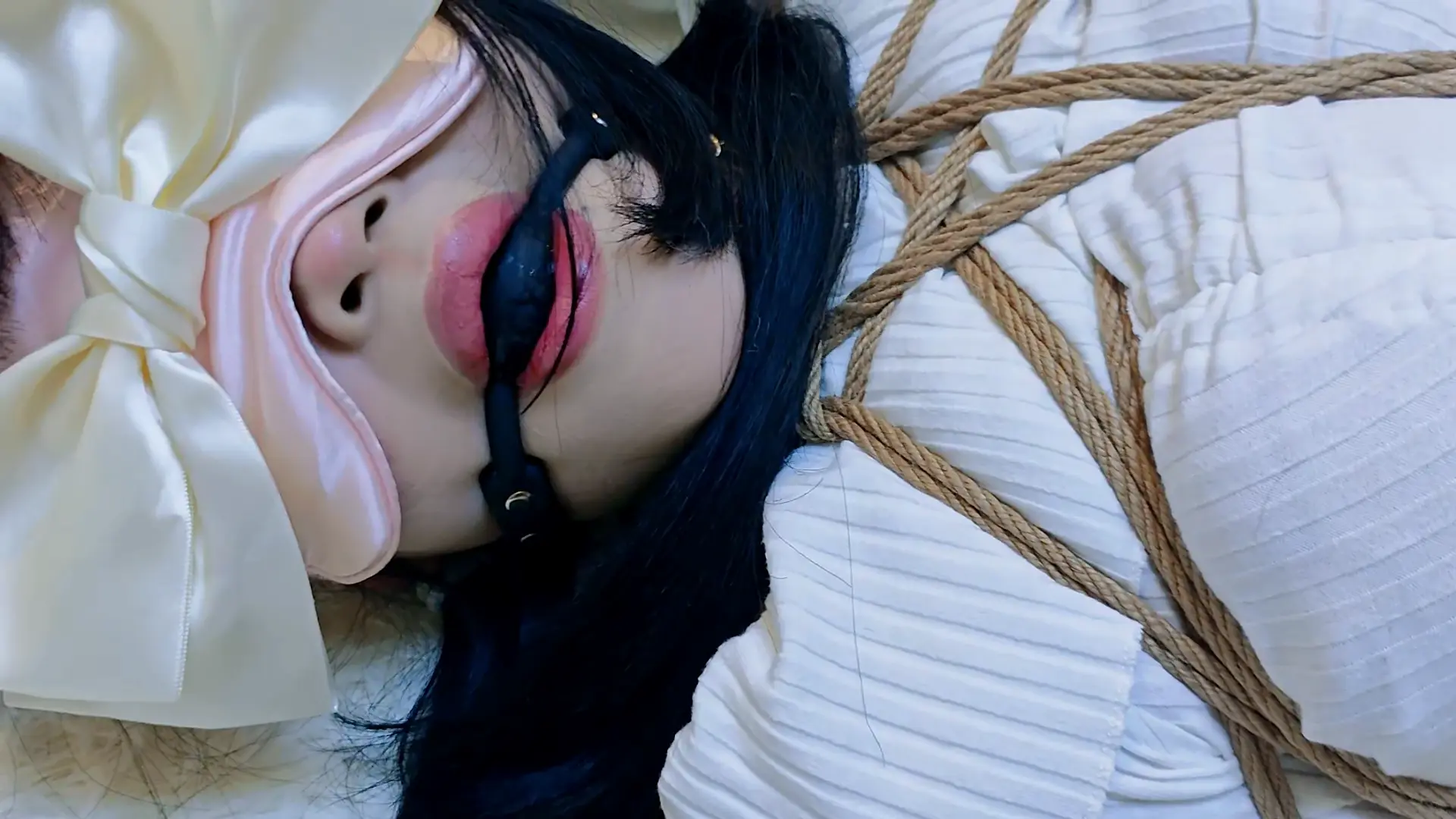 带了眼罩和口球,因为被蒙着眼的原因所以不知道口水都流到了哪里,全程都很担心又很羞耻..td也是依旧很折磨,位置时对时不对,每次想调整的时候身体又会被绳子牵引的很疼,而且这次绑的格外认真所以感觉全身的绳结都很紧,虽然是很久违的驷马但还是会有些难以忍受00