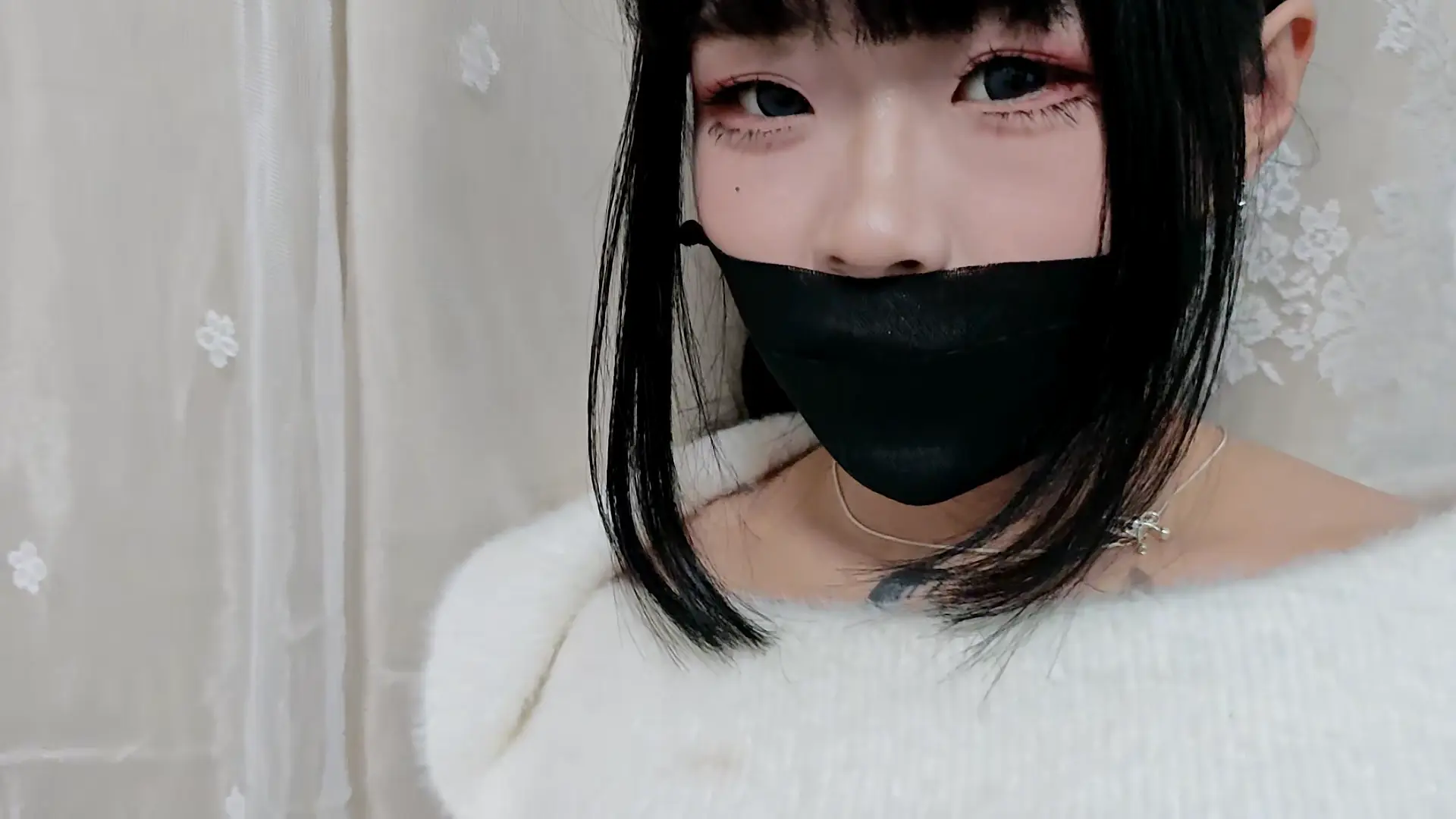 一件毛绒绒的居家连衣裙,其实本来是一件外穿的裙子来着,因为穿着太舒服就当成居家服了hhh。捆绑用的是静电胶带,第一次被这种胶带绑,刚开始还感觉蛮舒服,因为很有弹性觉得可以很轻易的挣脱的样子,但是可能绕的圈数有些多所以依旧没有成功,反而挣扎的时候被勒的很疼